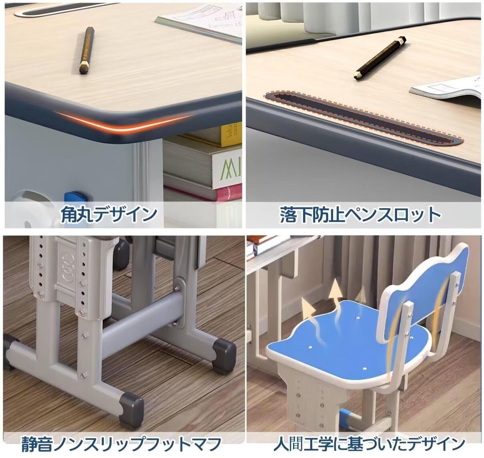 ️【成長に合わせた調整機能】このセットは、学習机(高さ63〜76cm)と椅子(高さ37〜44cm)がそれぞれ調整可能で、子供の成長に合わせて柔軟に高さを変更できます。6歳から18歳までのさまざまな年齢層のお子様に対応でき、座りやすさを常に保ちます。