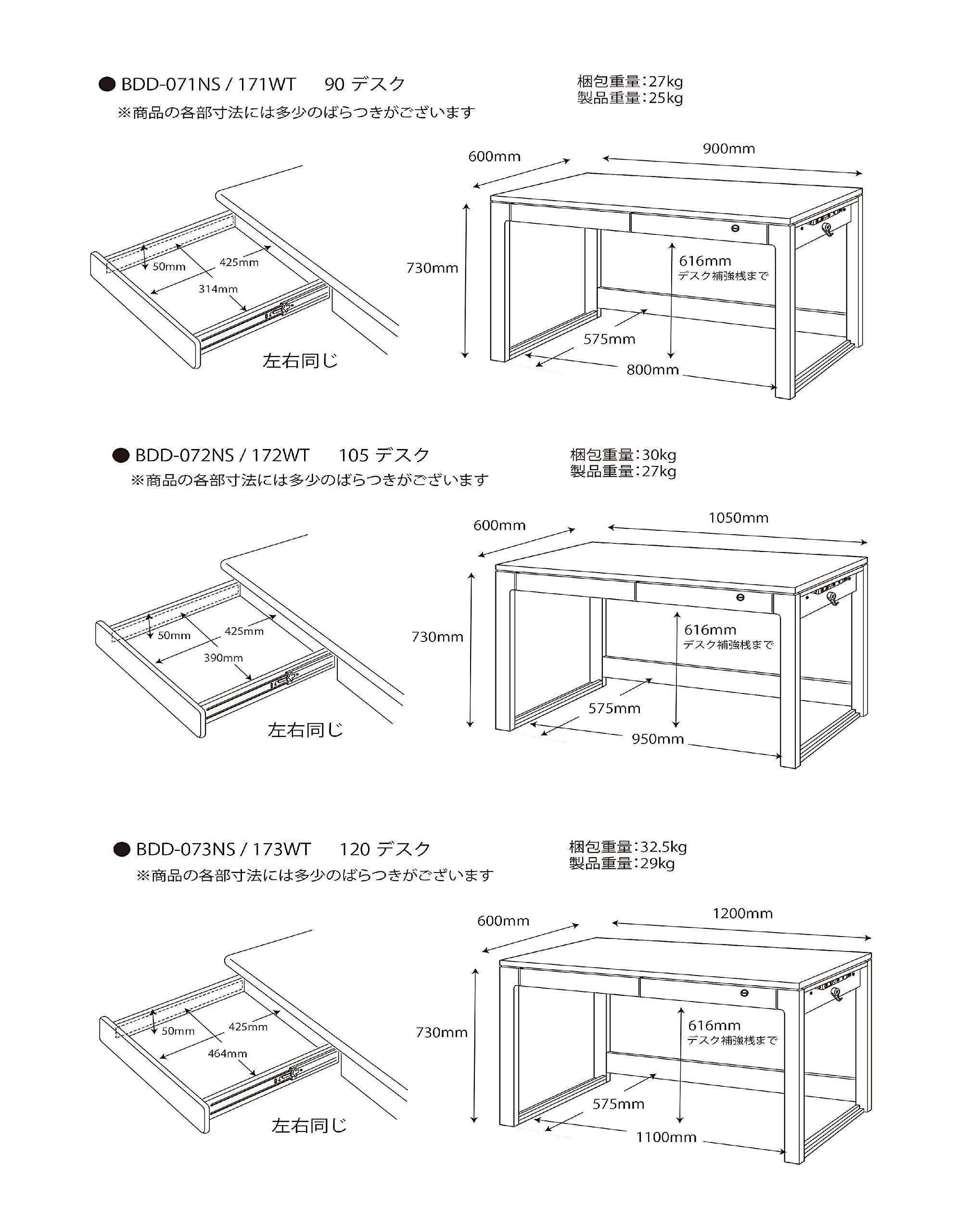 デスク幅は90㎝・105㎝・120㎝から選べます。