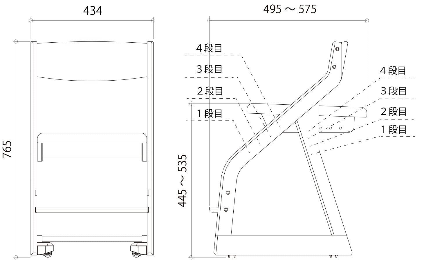 チェア(張材ファブリック)W434×D495~576×H765 mm