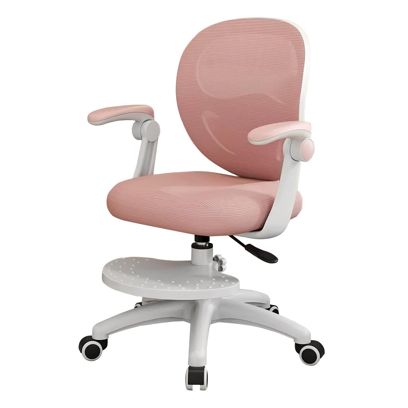 学習椅子 学習チェア ガス昇降式 勉強椅子 子供 キャスター付き 足置き 高さ調節 座面高さ調節 回転椅子 小学生 中学生 新学期 新生活 かわいい (ピンク, 手すり付き)