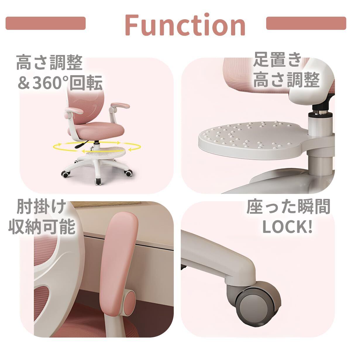 【数量限定】学習椅子 学習チェア ガス昇降式 勉強椅子 子供 キャスター付き 足置き 高さ調節 座面高さ調節 回転椅子 小学生 中学生 新学期 新生活 かわいい (ピンク, 手すり付き)
