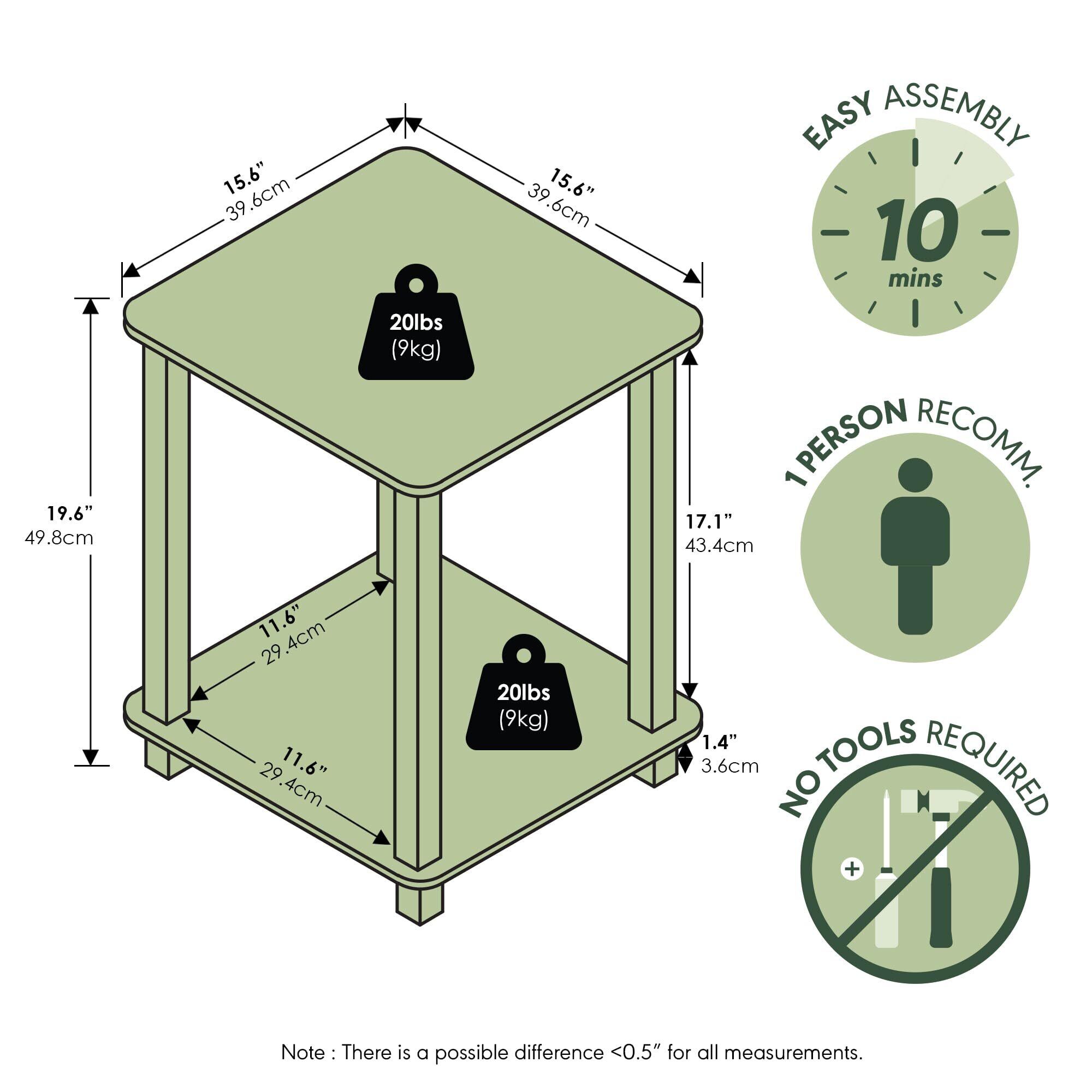 フリノ (Furinno) Simplistic シンプリスティック エンドテーブル 2台セット フレンチオークグレー/グレー 39.6D×39.6W×49.8H cm 【日本正規輸入品】