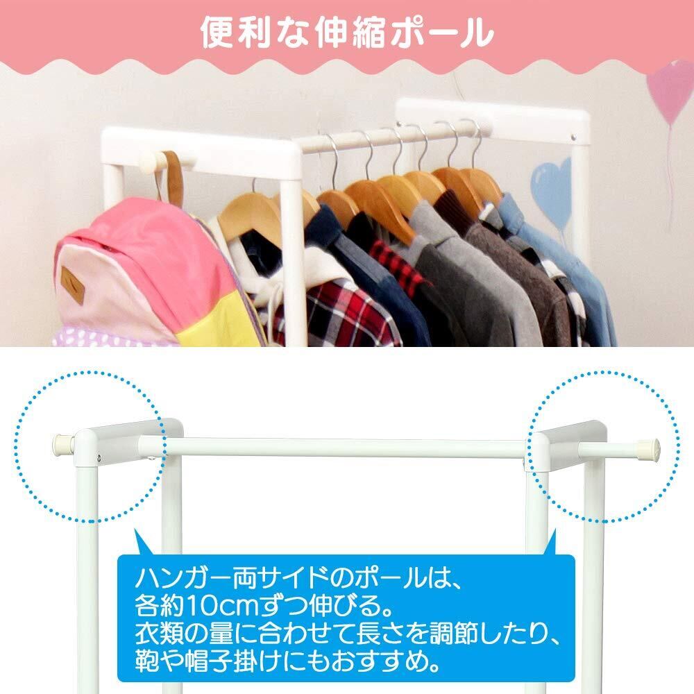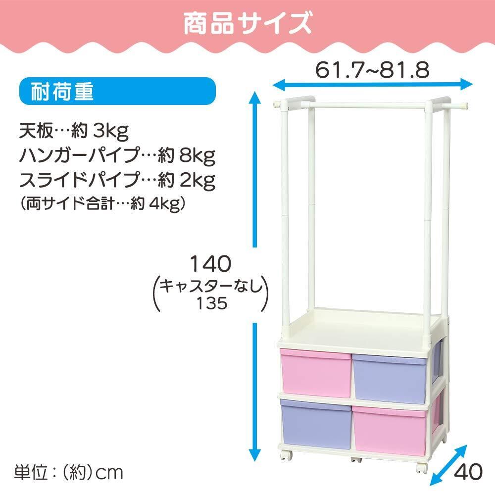 耐荷重(約):天板:3kg、ハンガー部:12kg(伸縮パイプ:1本あたり2kg、その他:8kg)