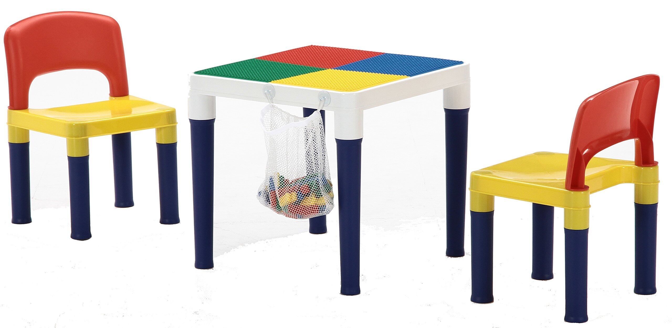 【2022最新】不二貿易 子供用 テーブル チェア 3点セット 幅44×奥行44×高さ42cm カラフル チェア2脚 2WAYテーブル 100ピース ブロック付き 95413