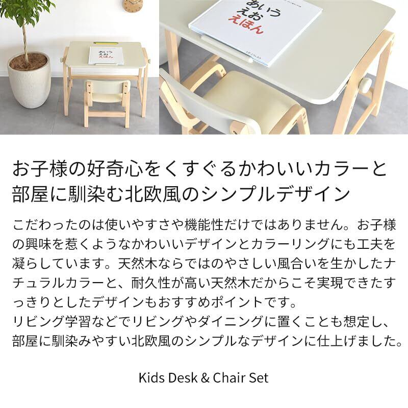 Kidzoo キッズデスク&チェアセット ILS-3710|2~5歳対応 高さ・角度調節 天板ストッパー付き 落下防止 子供用学習机 北欧風 天然木 ナチュラル