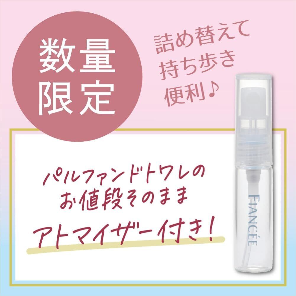 今だけアトマイザー付き!数量限定のコフレセットです。 【フィアンセ パルファンドトワレ ピュアシャンプーの香り】 ボディミストよりも香りが長く続くパルファンドトワレ。甘く爽やかに広がる、お風呂上がりのようなシャンプーしたての香りです。 ●トップノートはグリーンアップルとレモンが爽やかに香ります。●ミドルノートはほのかに続くフローラルの香りです。●ラストノートが醸し出す上質な清潔感が香りに奥ゆかしさを与えます。