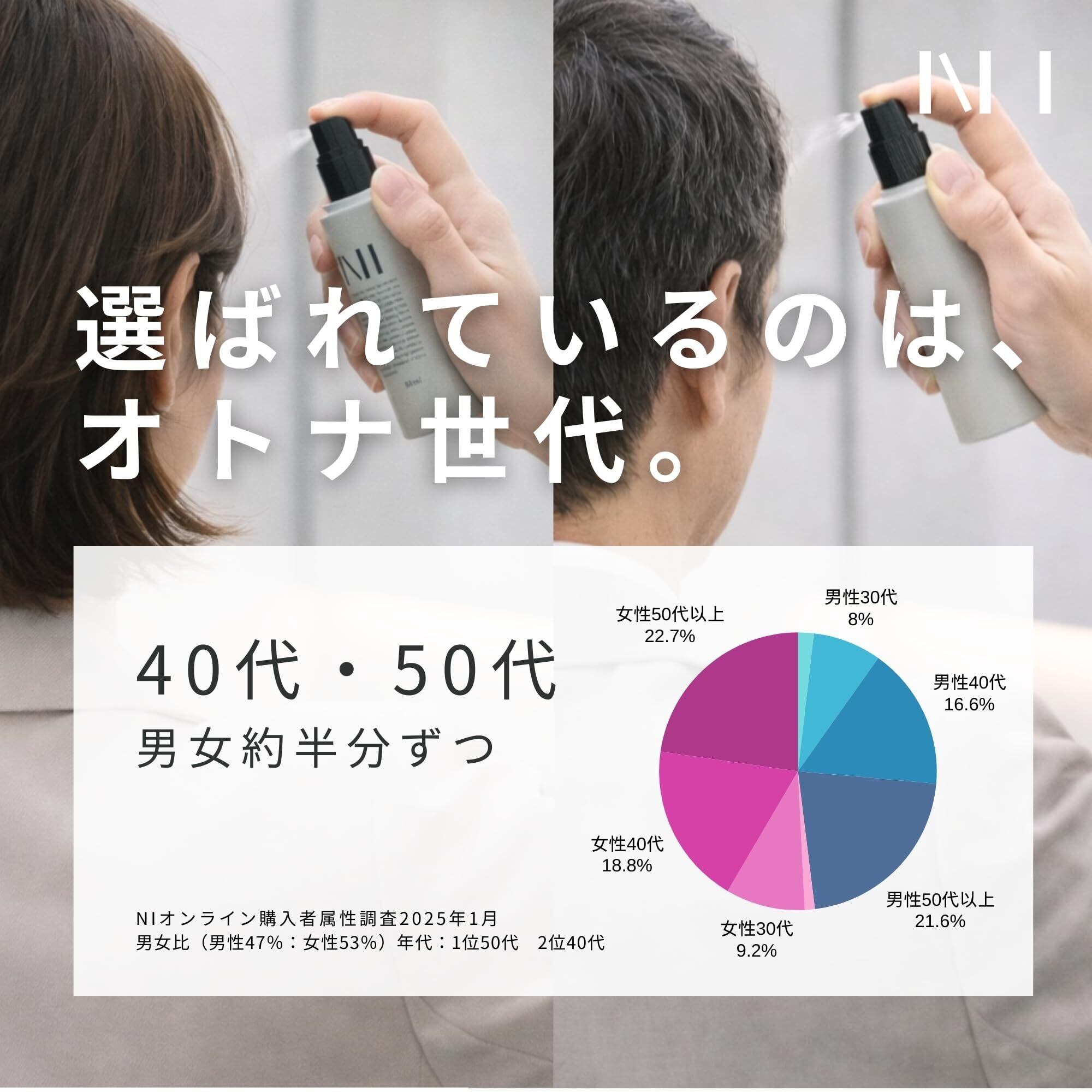 40歳以上の体臭ケアと、肌の乾燥によるハリ不足に対応するオールインワン・ボディスプレー。頭皮から足裏まで全身に使用可能。アミノ酸抗菌・消臭研究30年の叡智を結集。介護用衛生管理用品の技術を応用し開発。大人のニオイ悩みと美肌ケアを1本で解決。
