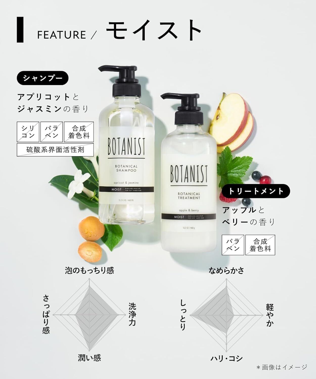 【シャンプー / トリートメント 香り】華やかで優雅なアプリコットとジャスミンの香り / 上品で甘美なアップルとベリーの香り