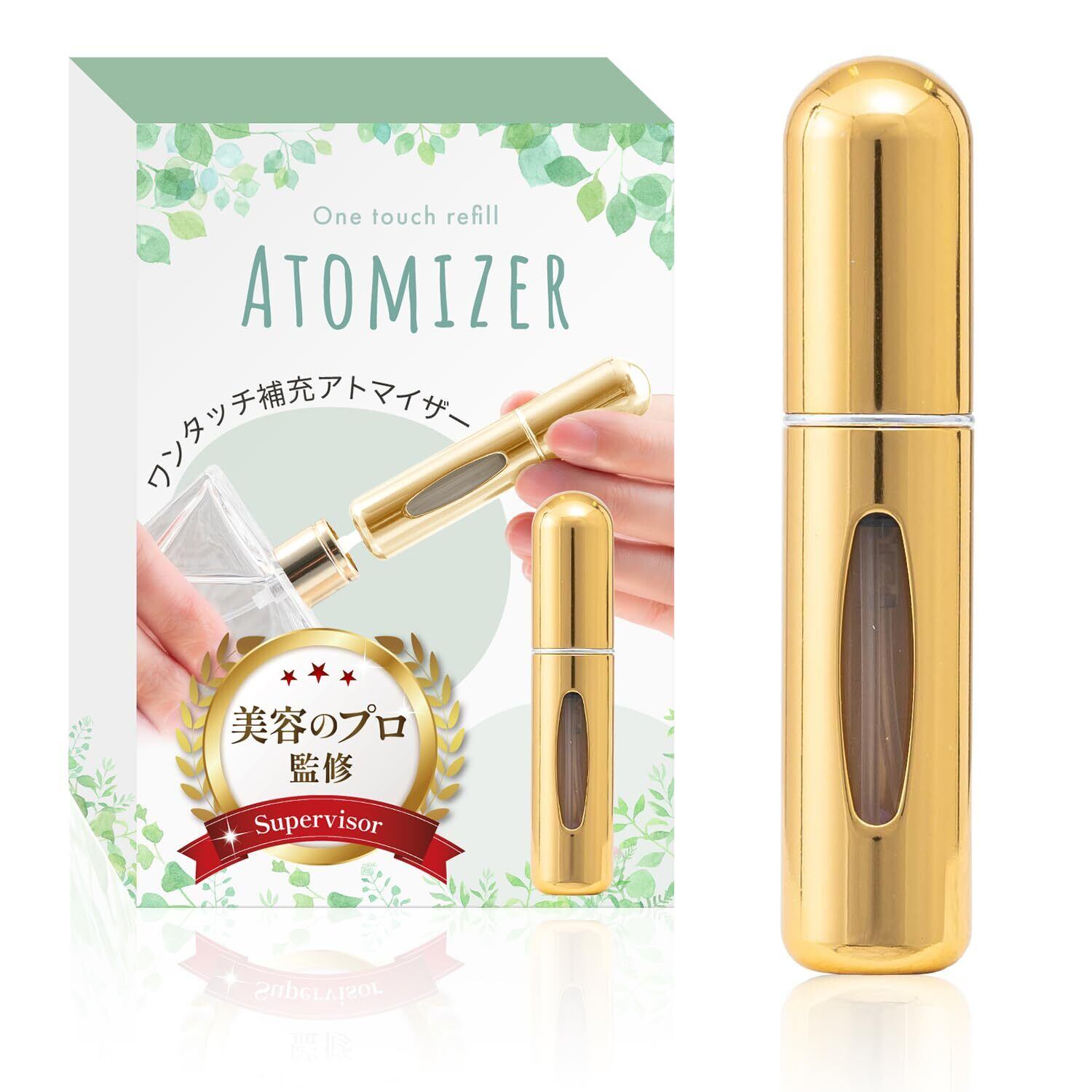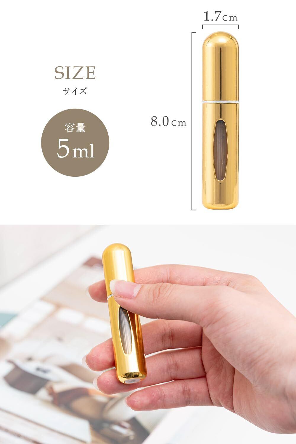 アトマイザー 香水入れ (5ml)【美容のプロ監修x日本メーカー】簡単ワンタッチ補充x持ち運びやすい口紅サイズx重さわずか10g (ゴールド)