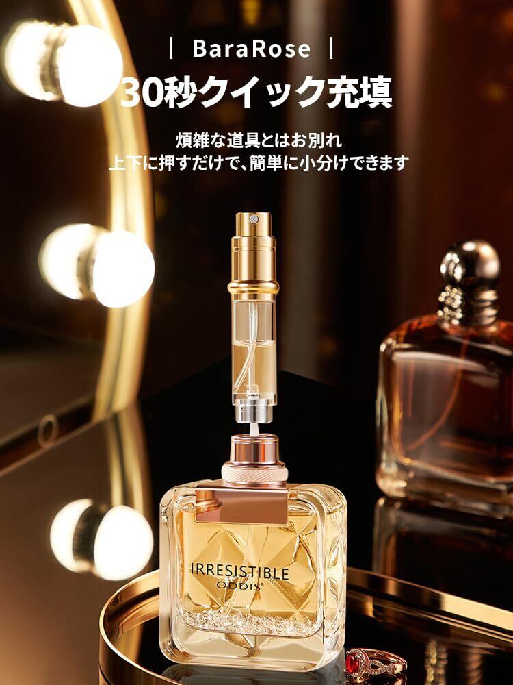 【底部充填操作が簡単】アトマイザー 香水革新的な底部充填デザインにより、スポイトなどの補助ツールが不要で、手を汚さずに軽く押すだけで10〜15秒で簡単に充填できます。