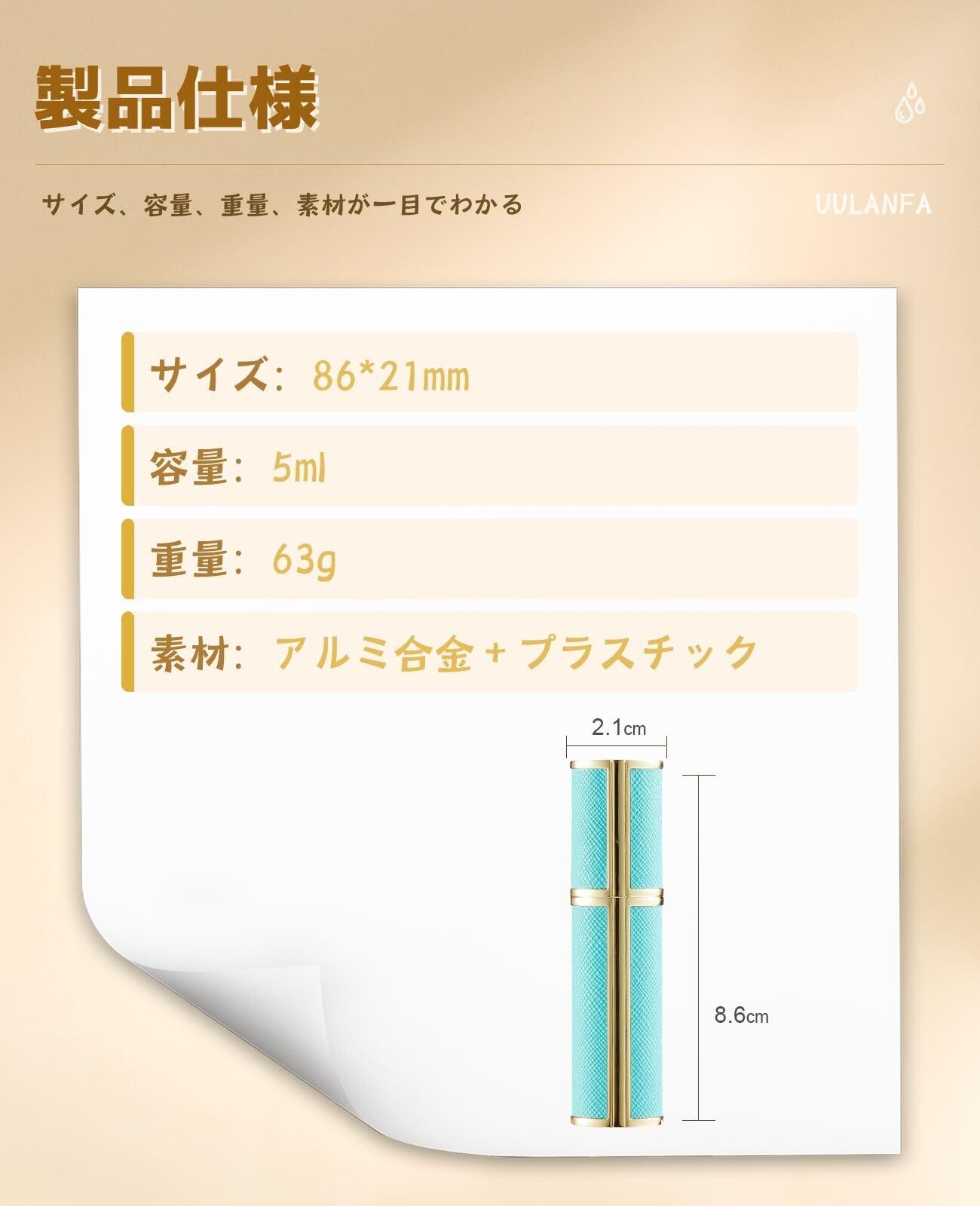 【旅行用の携帯再利用可能】 5mlミニ香水アトマイザーは、口紅のように小さく、1回の注入で約70回スプレーでき、8〜13日間使用可能です。コンパクトで持ち運びに便利なデザインで、クルーズ、車内、旅行中、またはハンドバッグに入れても非常に適しています。旅行の必需品であり、男女共に使用できます。また、口臭清涼剤や化粧水などの液体も詰め替え可能です。