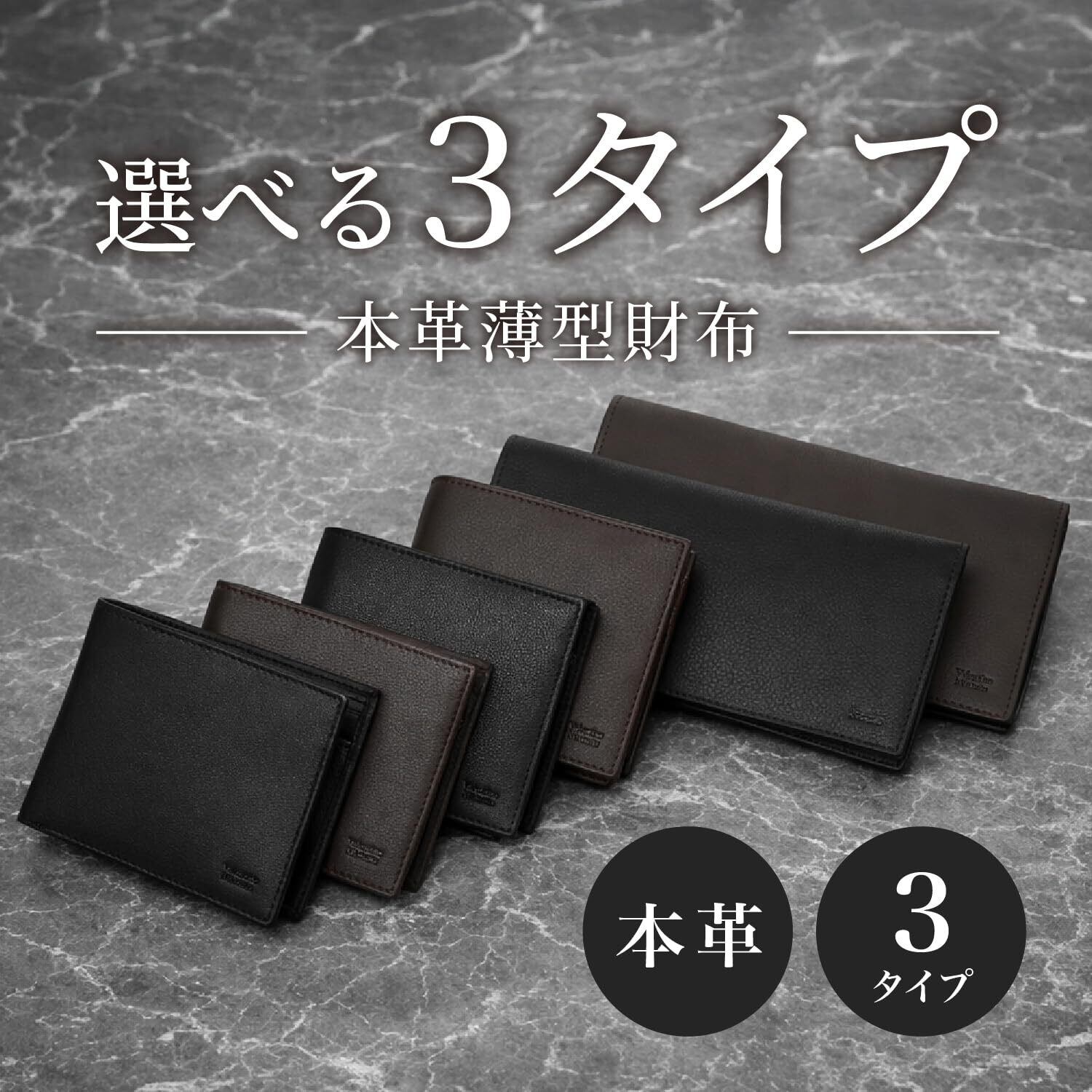【特価セール】[ULTIMATELABEL] 財布 メンズ 2つ折り 本革 薄い 超軽量 小銭入れ 大容量 の 財布 二つ折り財布 長財布 コンパクト 牛革 (ブラック, 長財布)