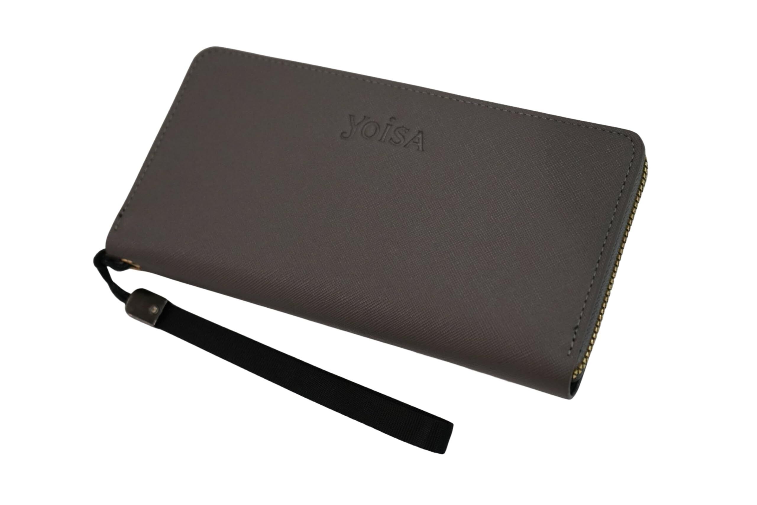 YOISA 長財布 ラウンドファスナー 多機能 カード収納 ゴールドジッパー グレーパープル