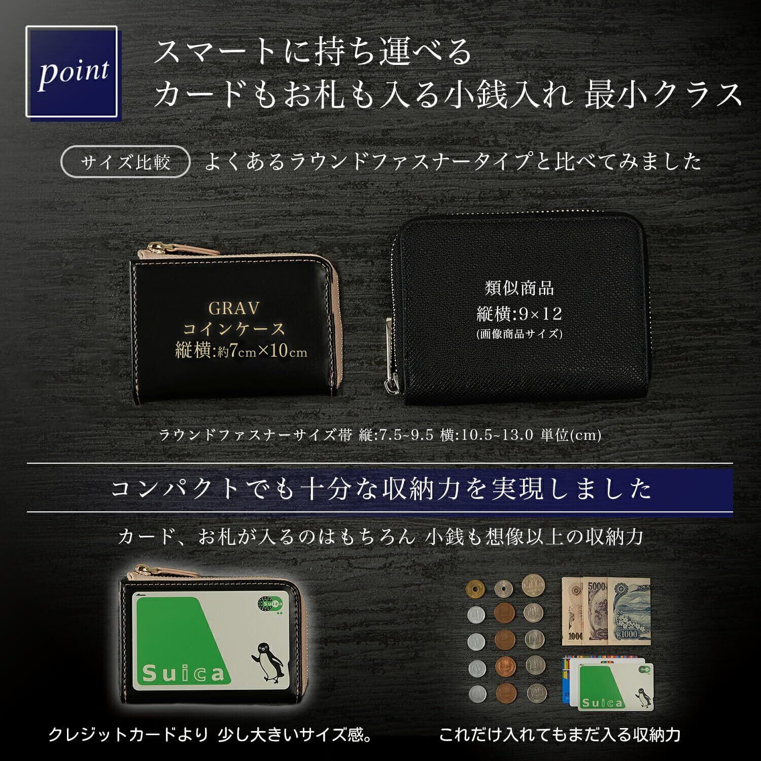 [GRAV] (雑誌掲載品) 【ミニマリスト推奨】小銭入れ メンズ コインケース カードケース 牛床革 レザー 小さい 財布 コンパクトモデル (ブラック/ナチュラル)
