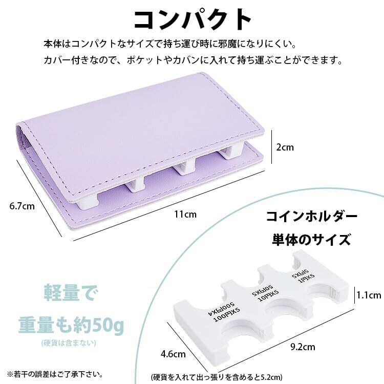 硬貨を入れる部分にストッパーが付いているので、持ち運び時にバラバラになりにくく、1枚のみ入れても落ちにくくなっています。