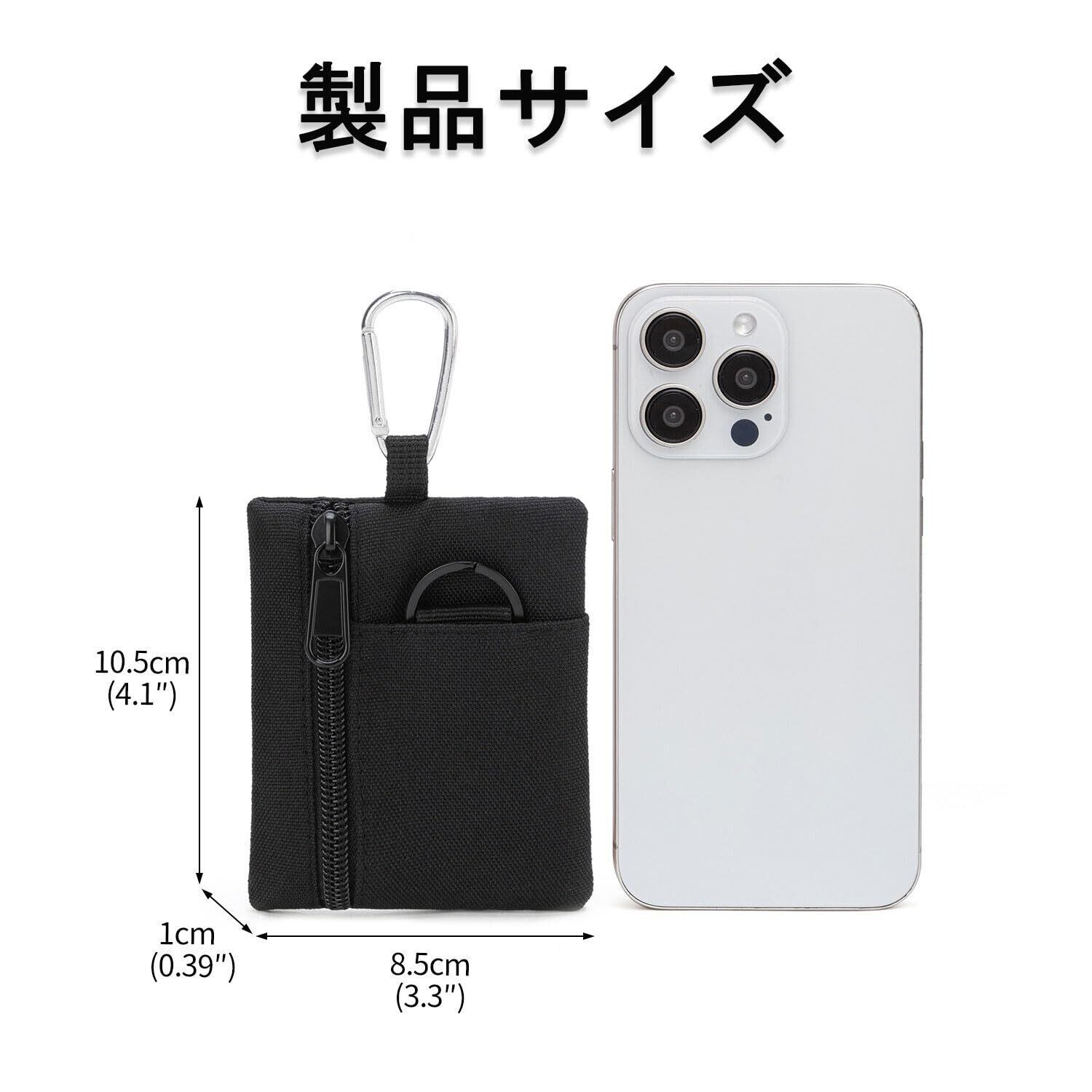 コインケース キーホルダー 小銭入れ アウトドア ナイロン メンズ レディース カラビナ コンパクト カード入れ ケース コード付き 吊り下げ ミニマリスト パスケース (Black)