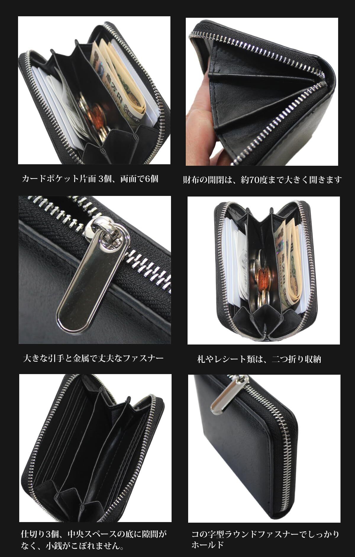 【機能性】カート入れ6個、小銭入れ1個、オープンスペース(札入れやレシート入れ、カード等入れ)2個