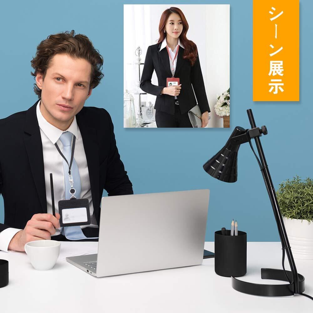 【上品な風合い、裂けにくて耐久性が強い】艶やかな光沢が美しい高級感溢れるIDカードホルダーです。手触りが非常にしっかり感じられ、堅牢度に感じられ、より安定しており、このパターンの耐摩耗性と耐圧性も大幅に向上しています。コバの仕上げは、天然ワックス素材を塗り、何度も何度も磨き上げ、しっかりと仕上げています。縫合をもっと補強してます 。各色は同じ色のステッチで構成されており、見た目も美しいデザインです。ネームストラップも同じ素材を使って作成され、細部までこだわります。丈夫で型崩れしにくく、使うほどにツヤが増し馴染みが出てきますので、他のローエンド革と比較して、耐用年数が大幅に延長され、耐久性が向上しています。カードホルダーは、紐とケース部分の継ぎ目が一番劣化が早いですが、本商品はとても頑丈です。強度が高い亜鉛合金を採用しました、細部までこだわいります。金属製リールはほかより耐久性に優れているので、長年使うことが出来ます。窓フィルムはPVC素材で、クリアな透明感なのでカード情報は一目瞭然のネームホルダーです。革製なのでプラスティックのカードケースよりカードの保護に不安があります。