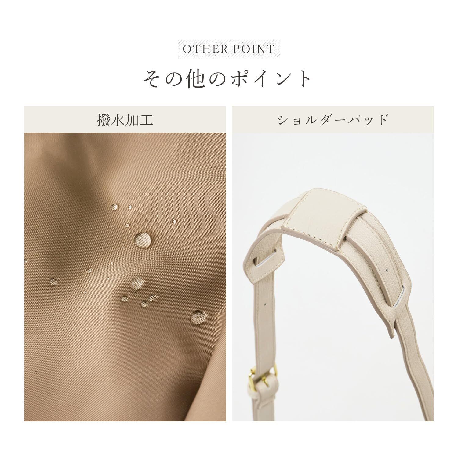 ハンドルやショルダーにこだわった人気の"肩楽シリーズ"に、新型が登場! クッション性のあるハンドルや、柔らかい合皮を使用したショルダーは、肩や腕への負担を軽くしてくれます。ショルダーパットは取り外し可能なので、シーンに応じて使い分けられるのもうれしいポイント。撥水加工が施されており、トートとショルダーの2WAY仕様なので、お出掛けから普段使いまで幅広く使える万能なバッグです。