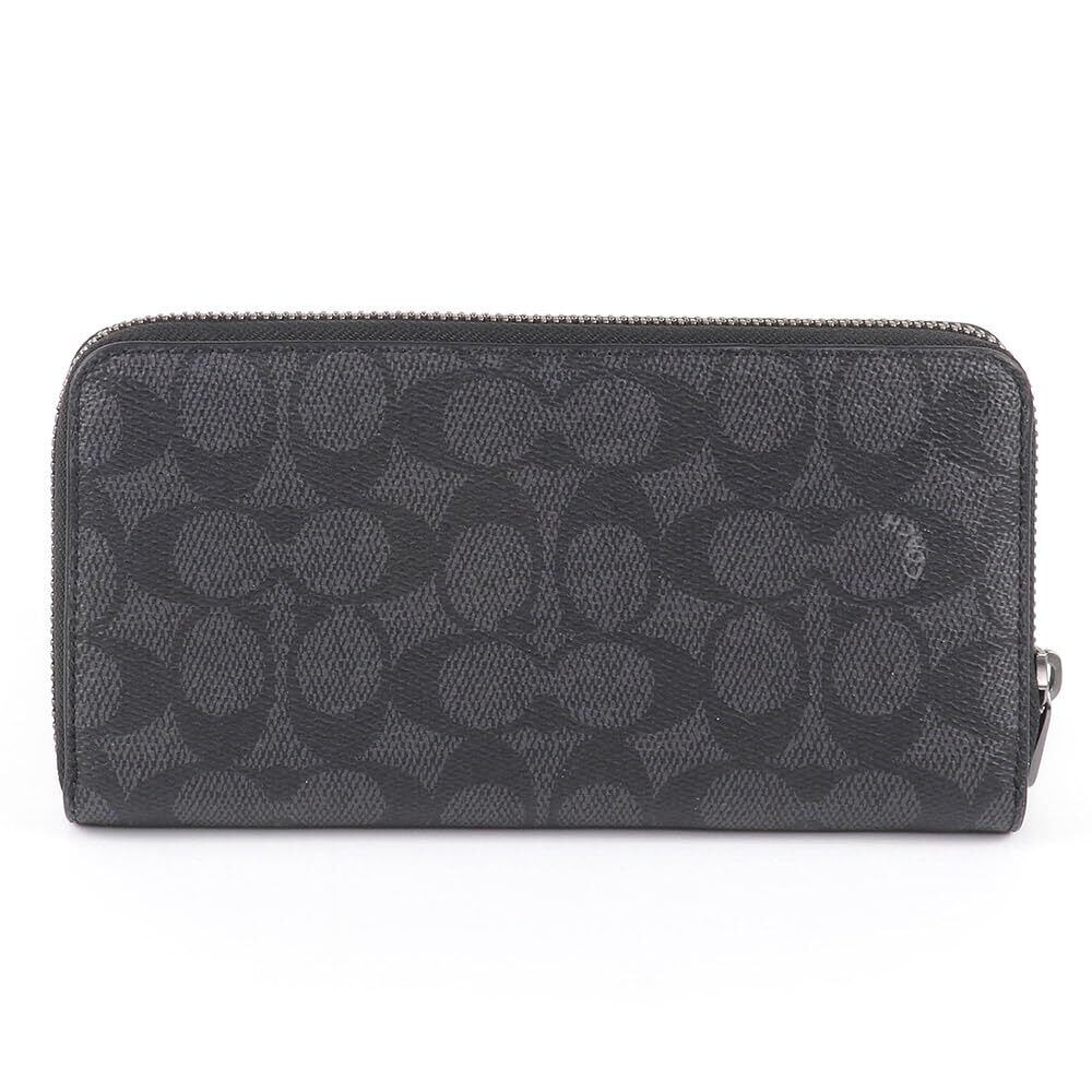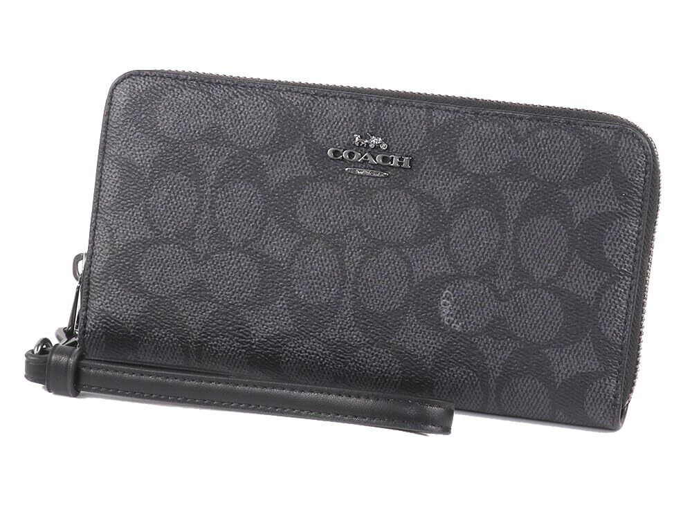 [Marco Polo] レディース 財布 ロング ジップ アラウンド ウォレット ストラップ付き 長財布 レディース シグネチャー コーテッドキャンバス レザー ラウンドファスナー 財布 カード収納豊富 ラウンドジップ PVC レザー C4452 リニューアルモデル CW778 アウトレット (チャコール×ブラック) [並行輸入品]