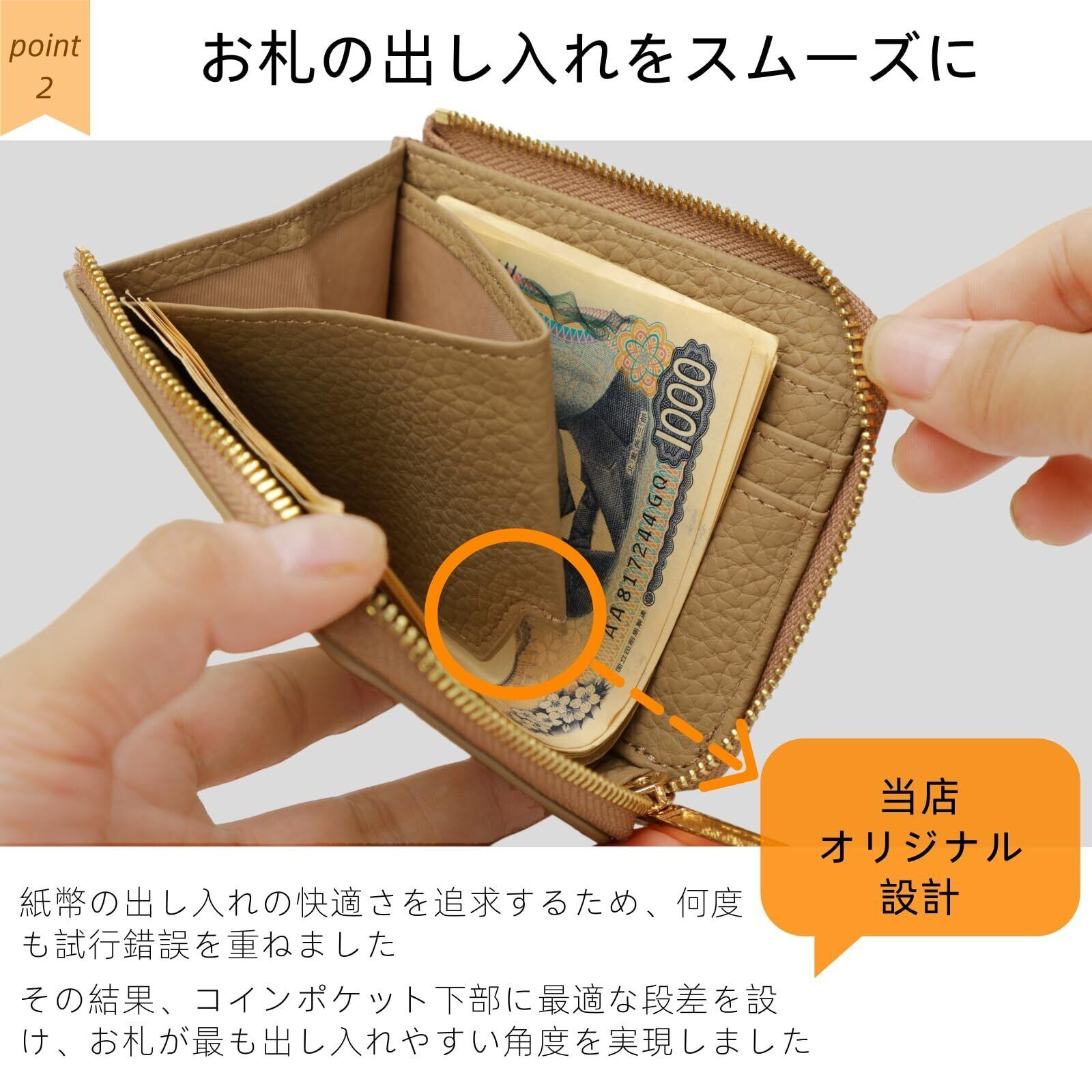 【機能性への工夫:紙幣の取り出しやすさ】 「お札が取りづらい」という小さな不便を解消するため、細部にまでこだわりました。小銭入れ下部に段差を設けることで、指が自然に馴染み、お札をスムーズかつストレスなく取り出せる最適な角度を実現しています。使いやすさを追求した機能性です。