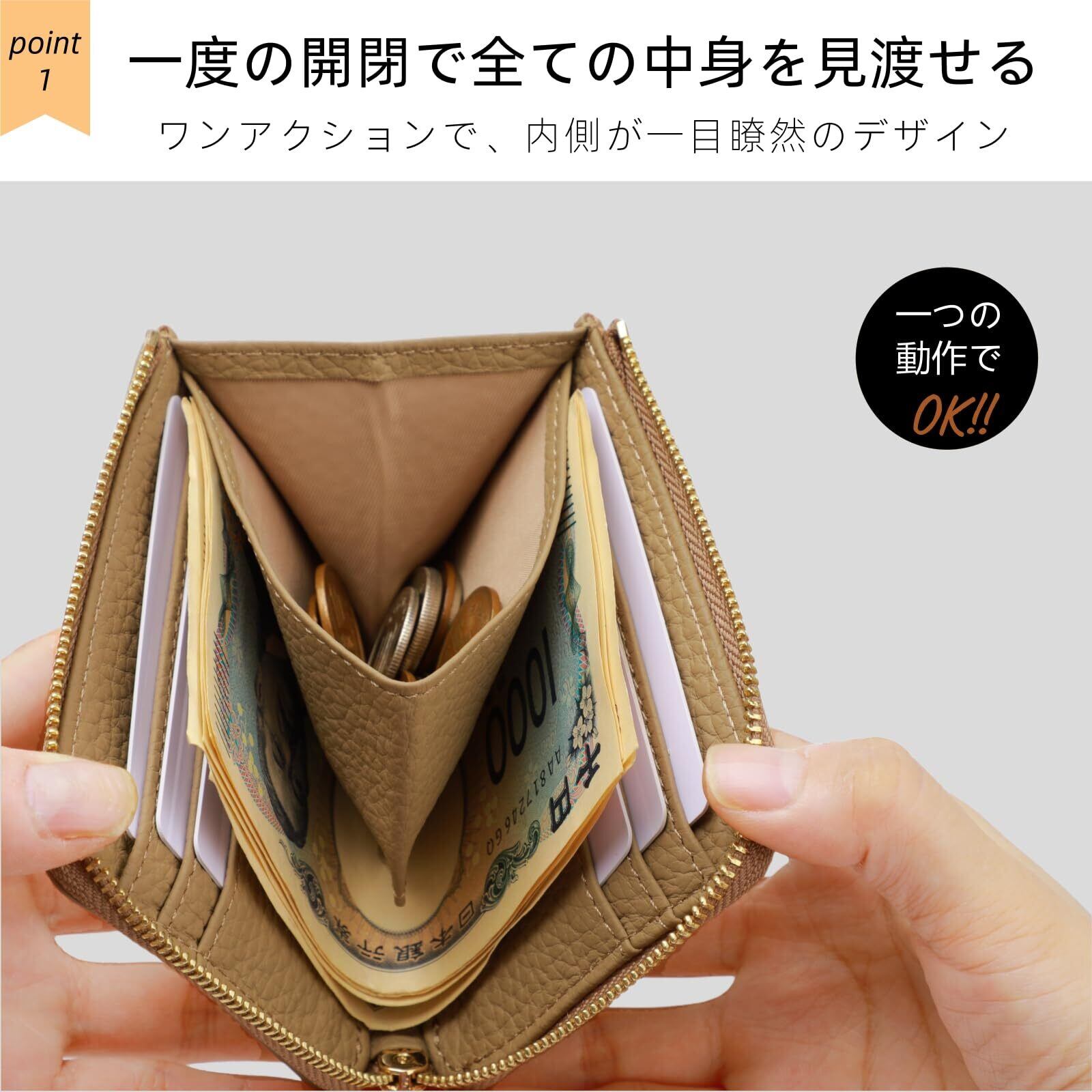 【コンパクトなのに、しっかり収納】 たった手のひらサイズの超コンパクトデザインながら、収納力は十分。 ● 硬貨:最大15枚 ● 紙幣:最大10枚 ● カード類:最大7枚 必要なものをコンパクトにまとめて、すっきりとしたお出かけをサポートします。
