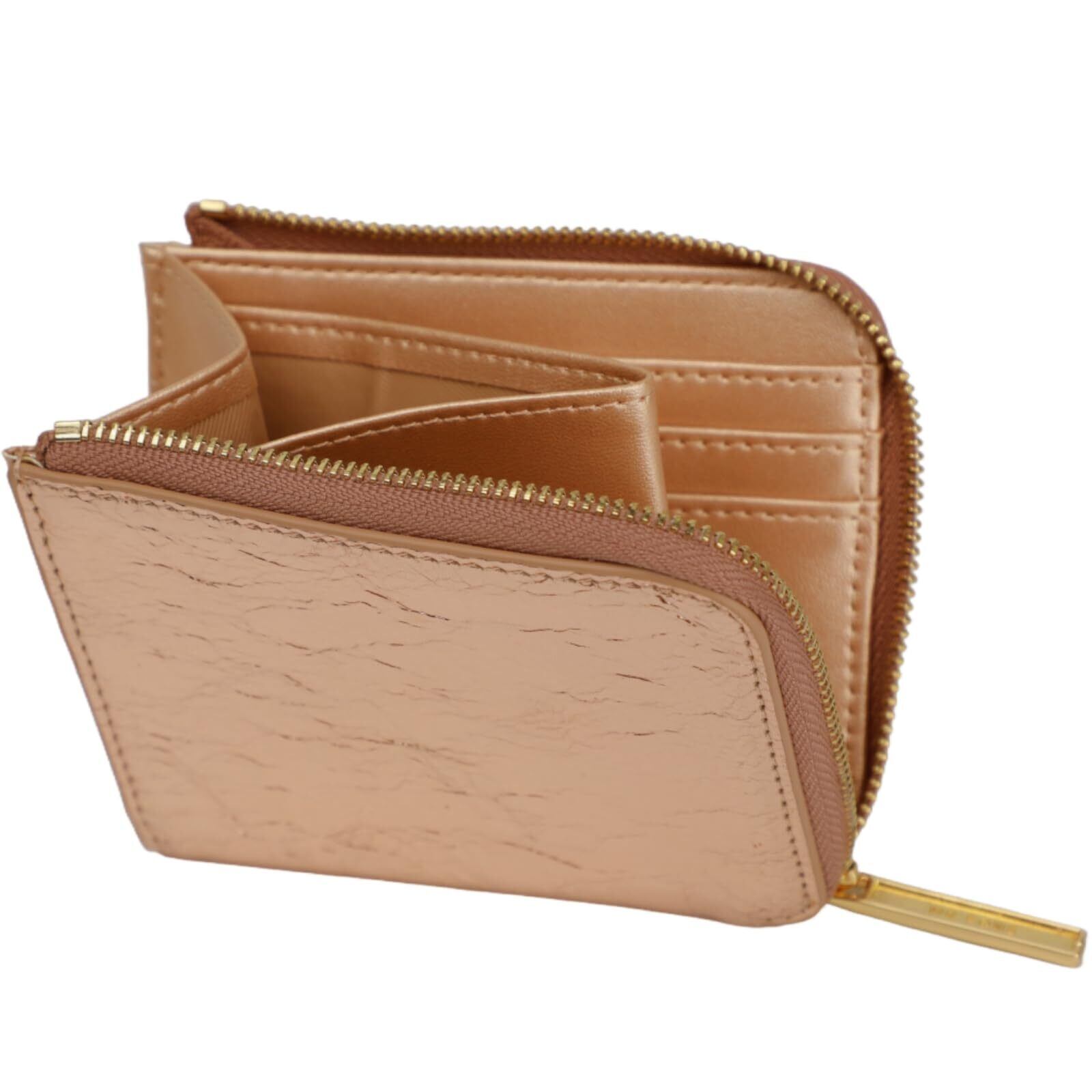 ミニ財布 レディース 小銭入れ 小さい財布 薄型 コンパクト L字ファスナー 軽量 お札が折れない 箔レザー (ピンクゴールド)