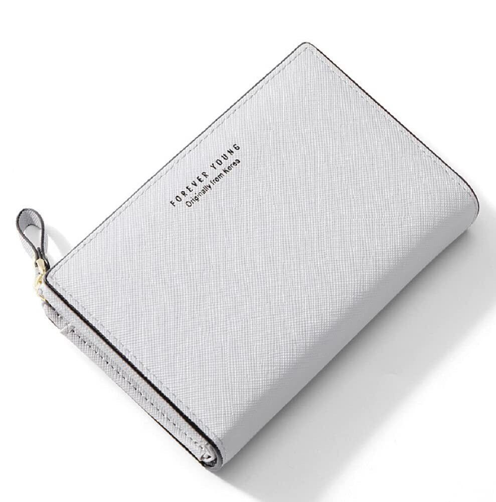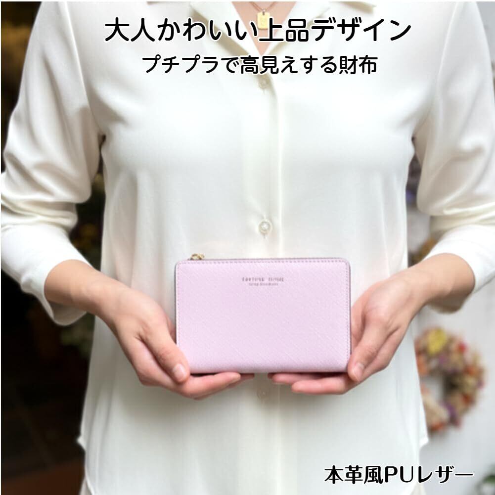 [Kugusa] 財布 二つ折り レディース コンパクト PUレザー カード10枚収納 L字ファスナー 小銭入れ お札が折れない 専用化粧箱付き かわいい(ライトグレー)