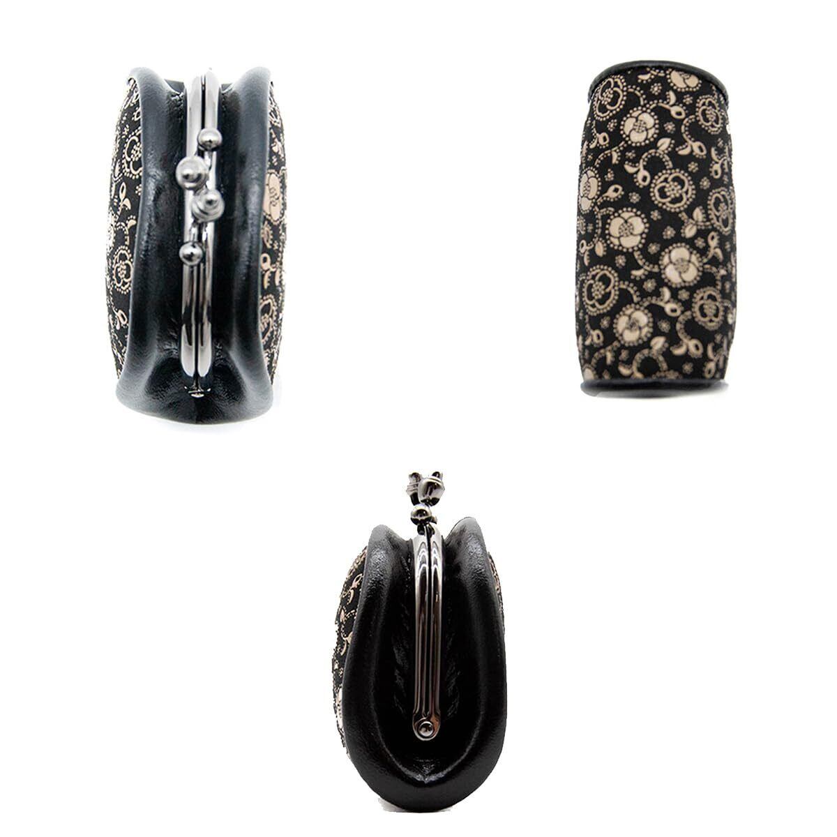 印傳屋 印伝 小銭入 コインケース 鹿革 漆 工芸品 No.1105 ([11-178] 黒地-白漆 椿)