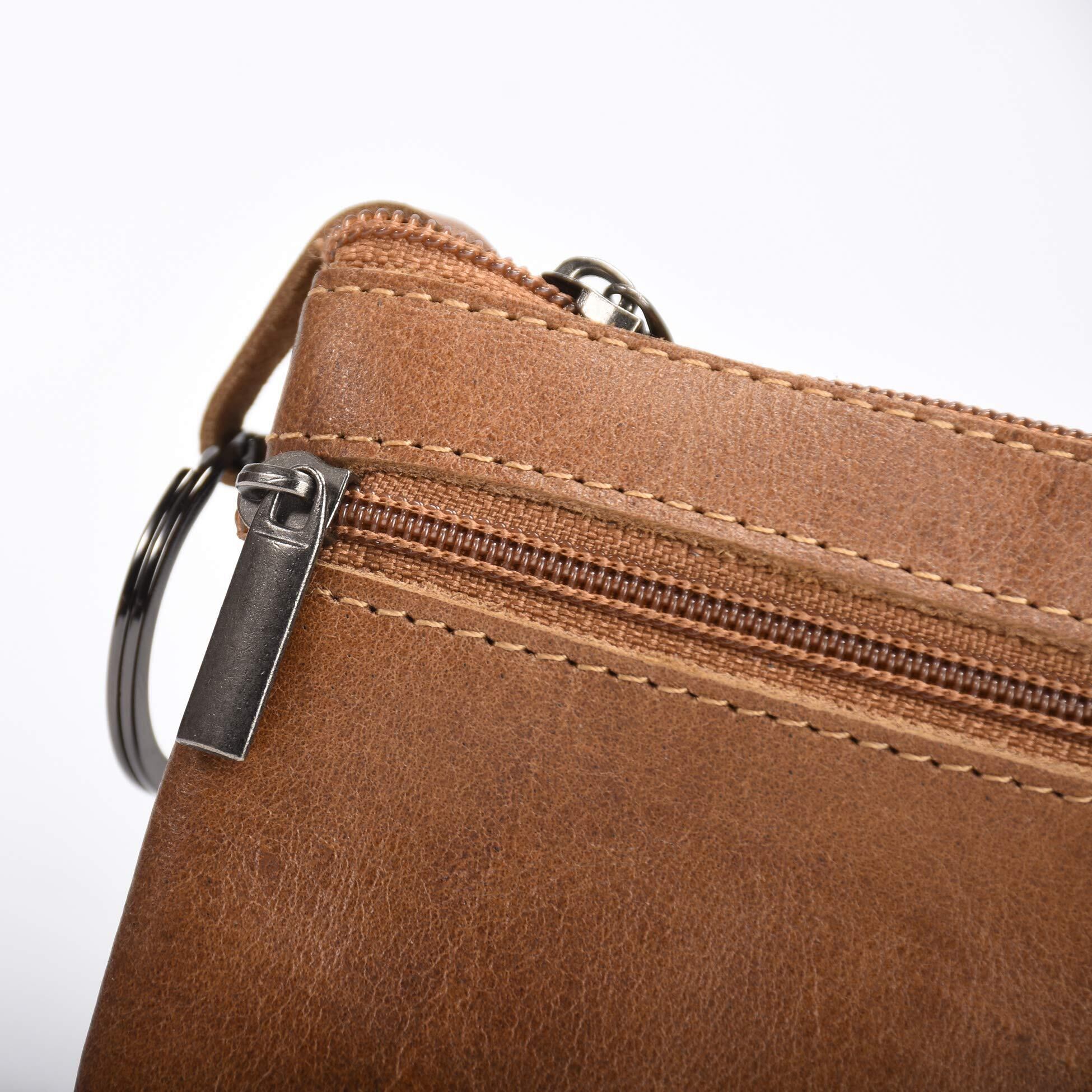 [CNHUALAI] 本革 小銭入れ カードホルダー ジッパー付き コインポーチ ミニ財布 がま口 カード入れ 名刺入れ キーリング付き 11*7.5*0.6cm