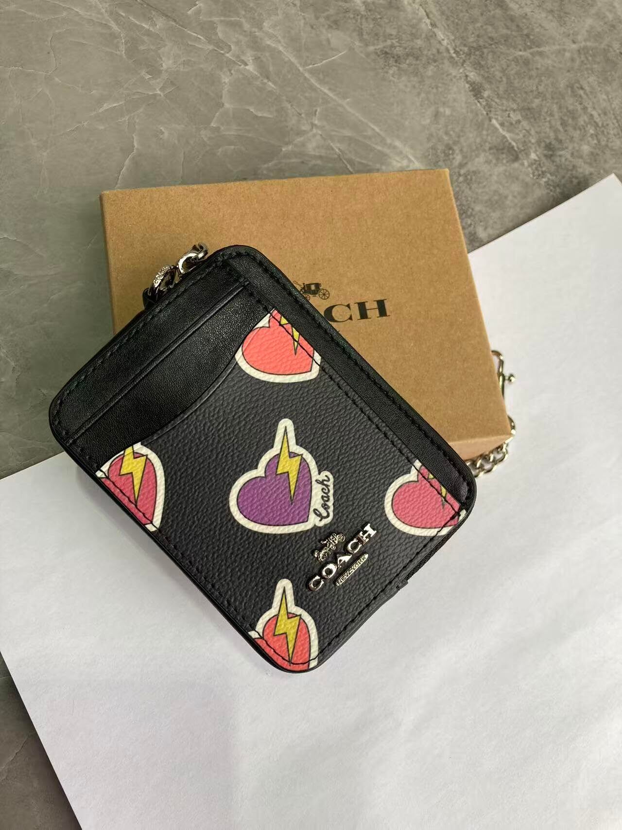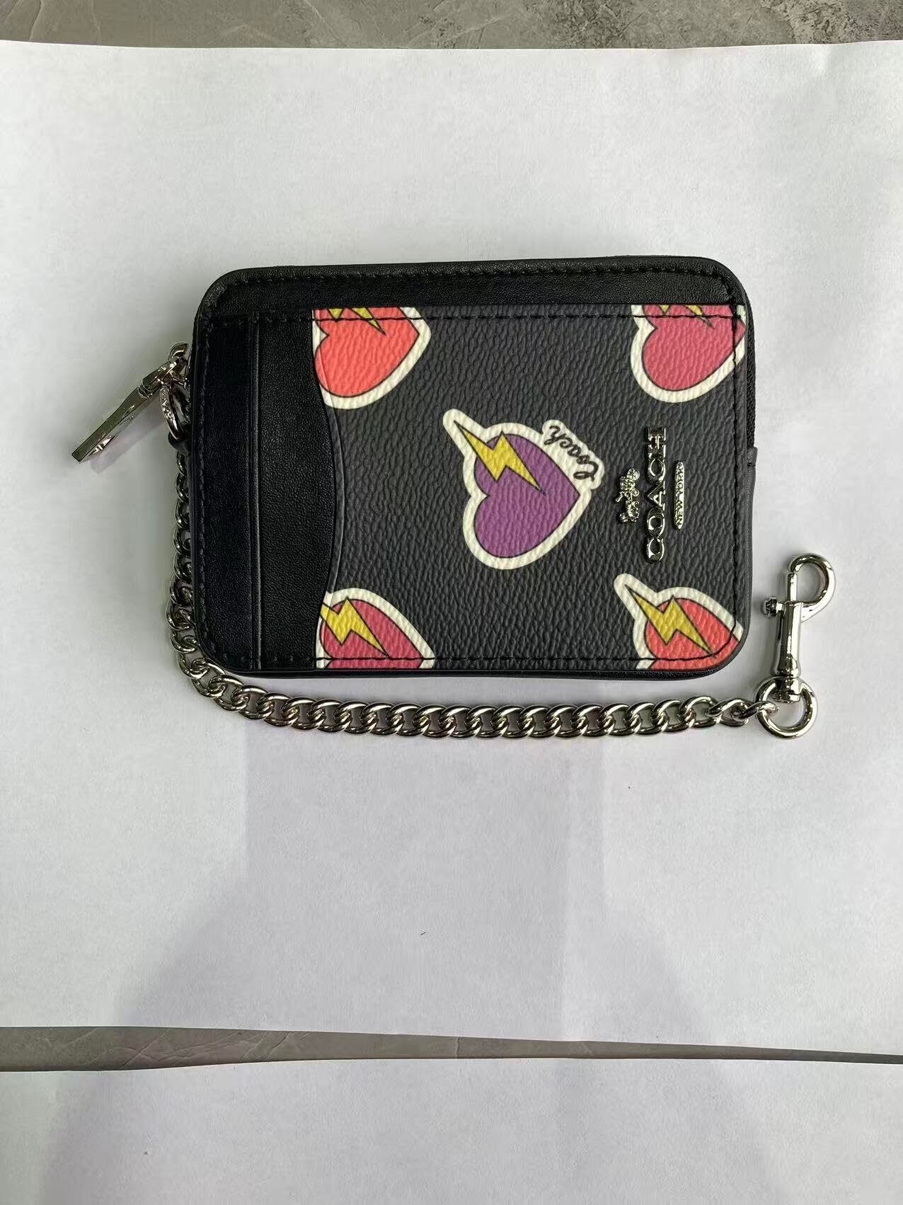 コ ー チ 財布(コインケース) F2454 CW453 ペブルド レザー チェーン ジップ カード コイン ケース レディース (Black) [並行輸入品]