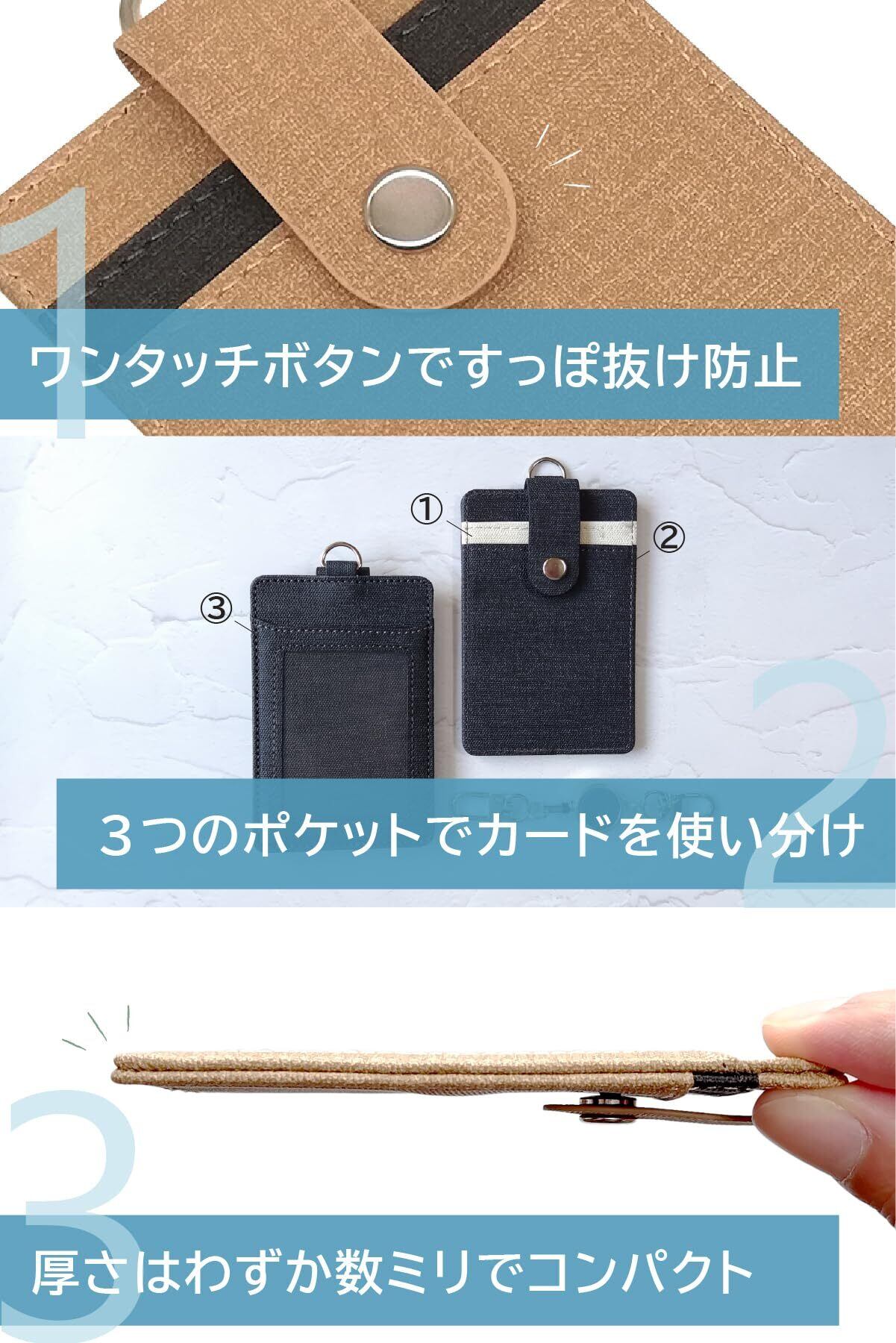 【大容量!】カードポケット3ヵ所付きの大容量。スイカ(Suica)・パスモ(PASMO)・イコカ(ICOCA)等の交通系ICカードに特におススメです。定期・社員証・学生証・会員証・クレジットカード・ポイントカードetc...IDカードケースやパスケースに。使い方はあなた次第!