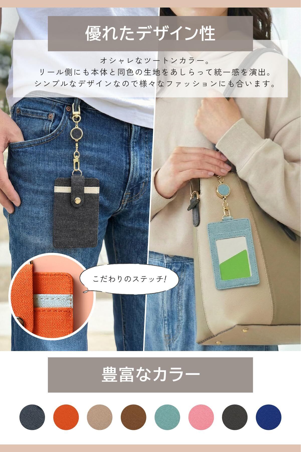 [FUJISKY] 定期入れ リール付き メンズ レディース 脱落防止バンド付き