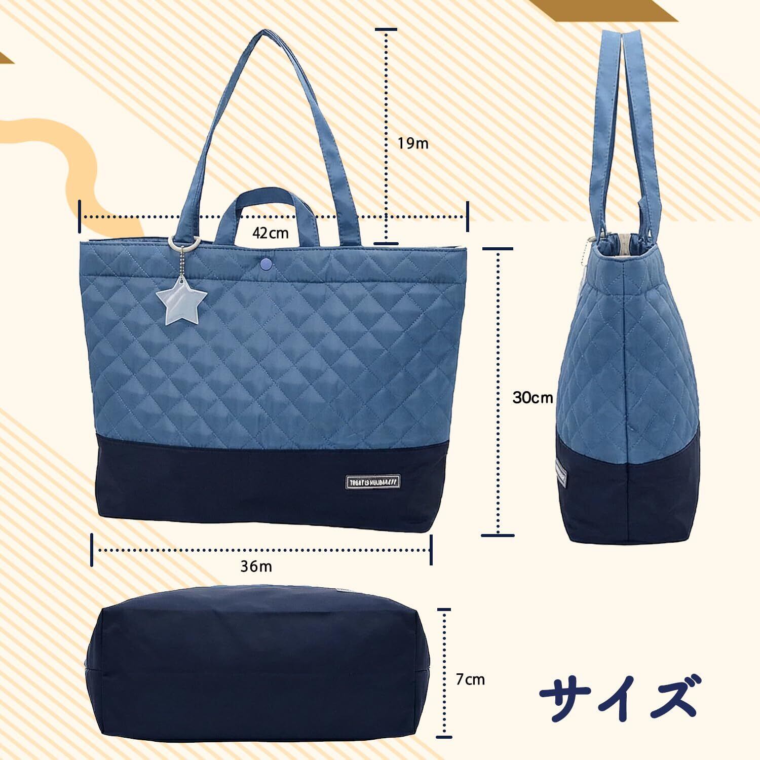サイズ:縦30cm × 横42cm × マチ7cm(底幅36cm)