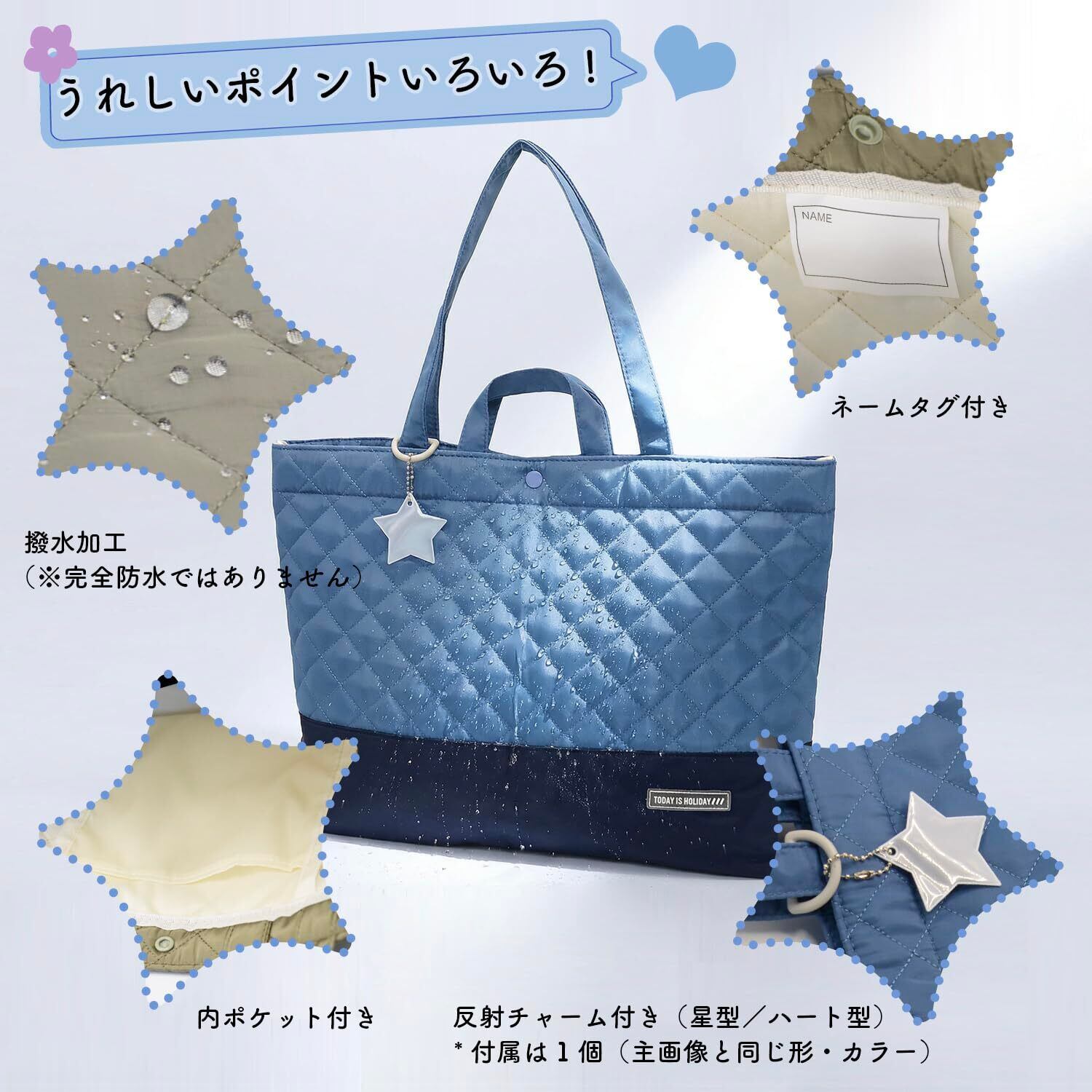 内ポケット&ネームタグ:小物整理と取り違え防止に便利(18×17.5cm)