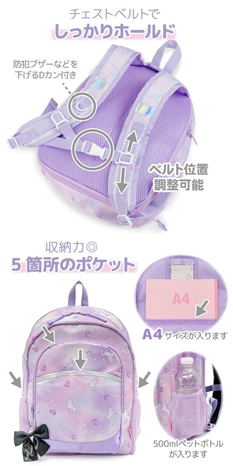 [マザーガーデン] キッズリュック 女の子 Lサイズ 子供用 リュックサック ユニコーン