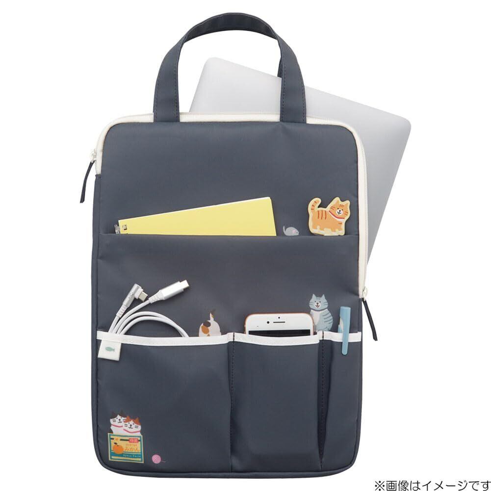 【特長2】コの字型に開くダブルファスナーで収納物が取り出しやすい。前面には小物が収納できるマチ付きポケット。約13インチノートPC収納可能。※機種やカバーの有無によっては入らない場合があります。持ち運びやすいハンドル付き。