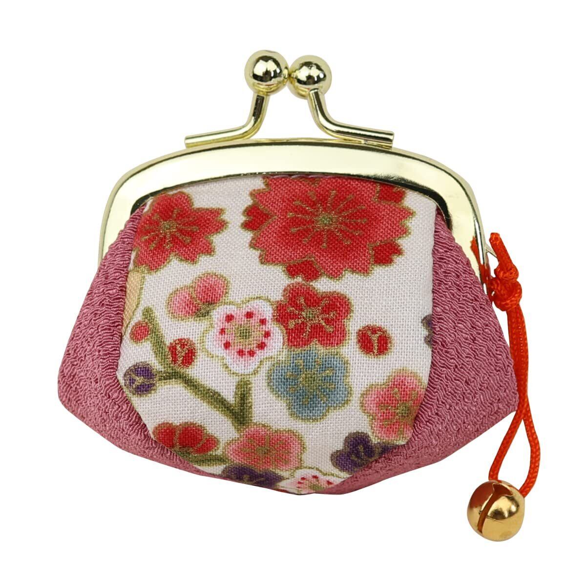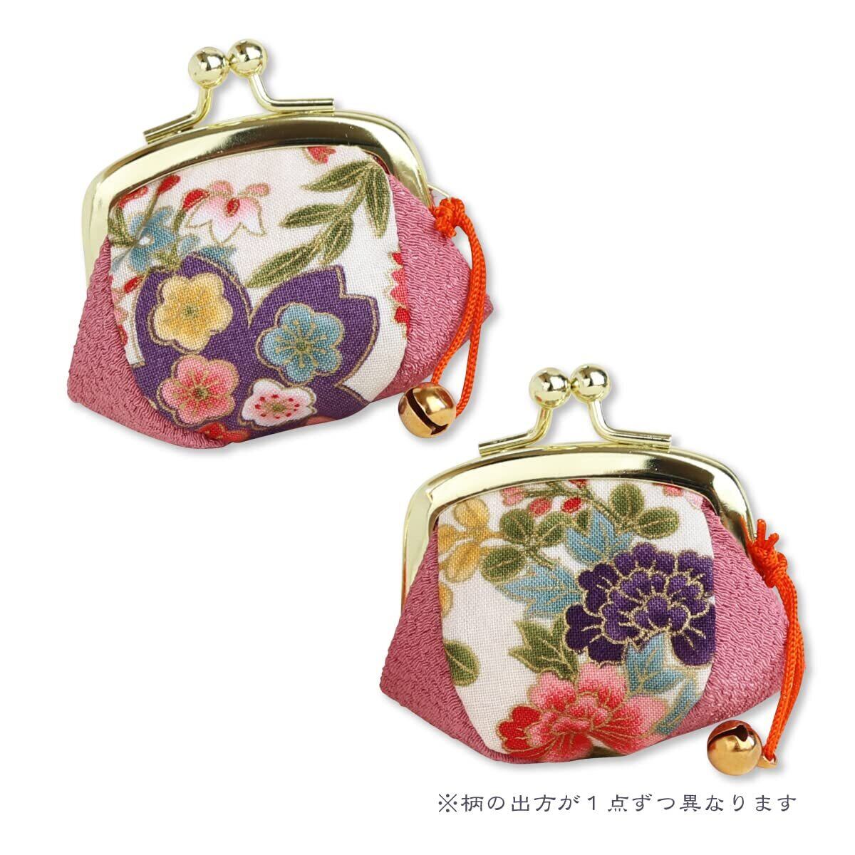 がま口 財布 指輪差し付き 小銭入れ ミニサイズ小鈴付 (四季彩爛漫(桃))
