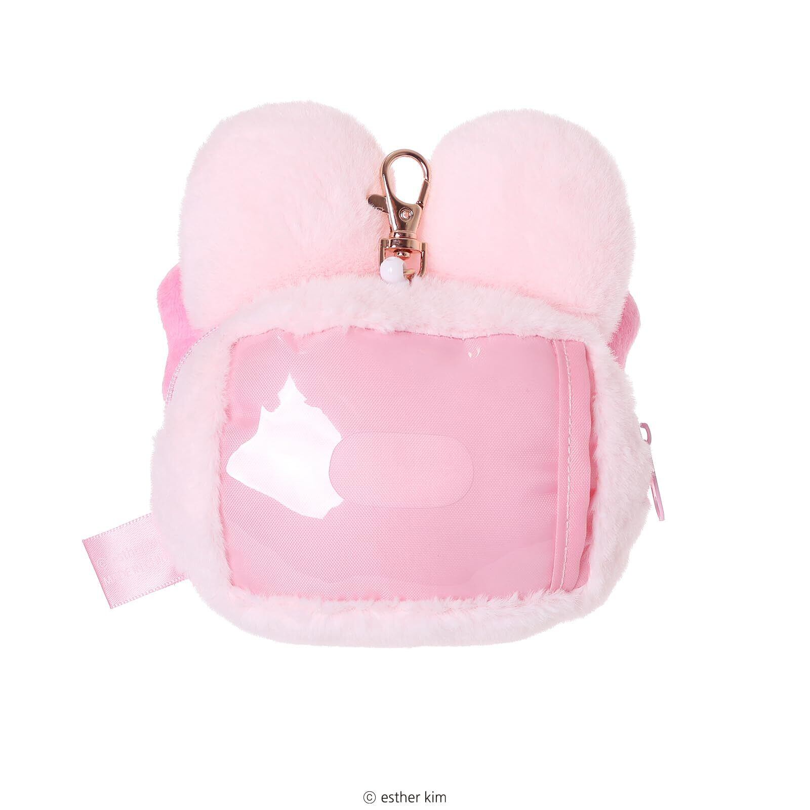 L25166 エスターバニー ぬいぐるみパスケース、ピンク、うさぎキャラクター、15×12×4cm、58g、リール付き、カード入れ、ファスナー式