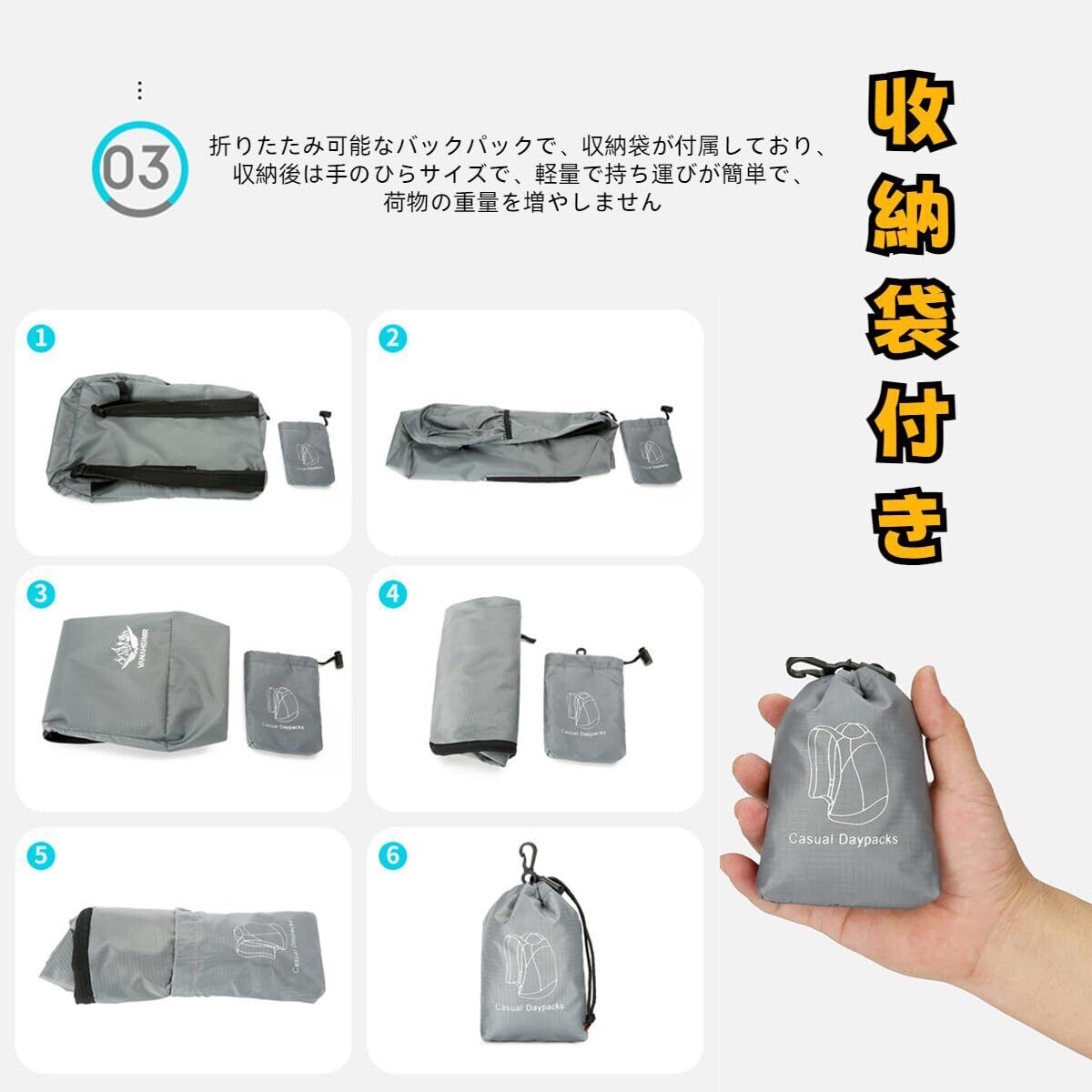 優れる耐久性と防水性: この折りたたみ リュックサックの外表は傷がつきにくく、丈夫で耐久性があります.この携帯リュックサックは生地が防水で雨にふられても隙間から水が入らず安心です。
