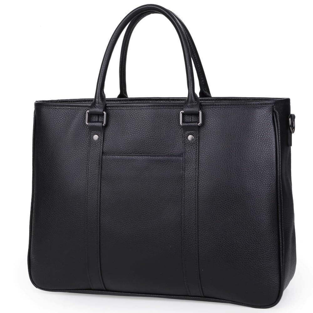 【素材】: 本革 【仕様】: ビジネスバッグ( ショルダーバッグ ) 【対象】 : メンズ 【サイズ】縦幅30㎝×横幅42㎝×マチ12cm×持ち手23㎝ 【重さ】1.4kg 【熟練本革職人が贈る 至高の大人鞄(ショルダーバッグ)】高級シボ牛本革を纏った「BAGPACK」シリーズ。大人の風格漂う逸品に仕上がりました。 【厳選した天然皮革を使用】 本商品は1層目の最表面の牛皮を使用しており、本革特有の不規則で美しい「シボ」(凹凸模様)を愉しんで頂ける商品となっております。 【こだわり収納】 内装には、大中小の小物ポケットとファスナー付きポケットを採用。クッションを施したパソコン専用ポケット付き。広々としたメインポケットは様々な物を収納できます。