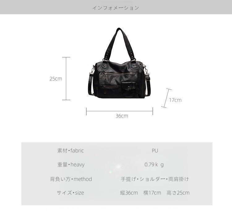 [KSTAMP] PUレザー ショルダーバッグ, ハンドバッグ 3WAY, 多機能ポケット, 36x17x25cm, 黒/ブラウン