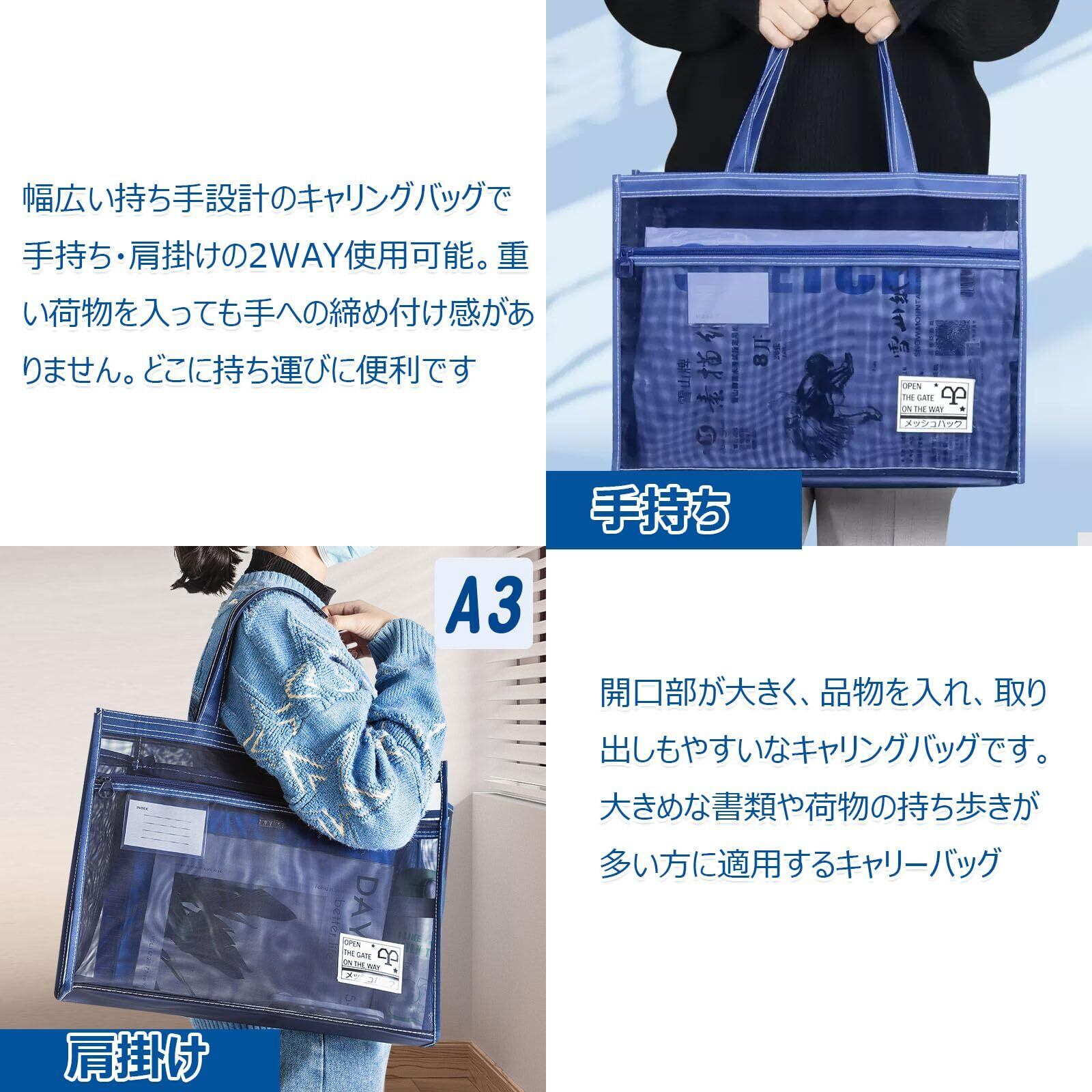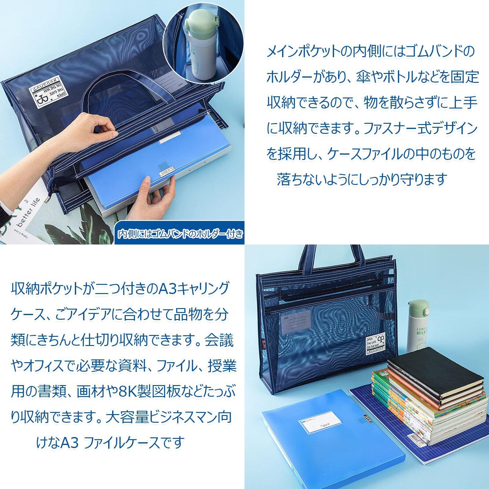 【新春セール】[WKYHLGKL] キャリングバッグ A3 ビジネスバッグ 手提げファイルバッグ 2層 大容量 多機能 A3 バッグ 仕切り収納 手持ち 肩掛け 2WAY使用可能 メッシュバッグ 携帯に便利 ファスナー式 キャリングケース トートバッグ 男女兼用