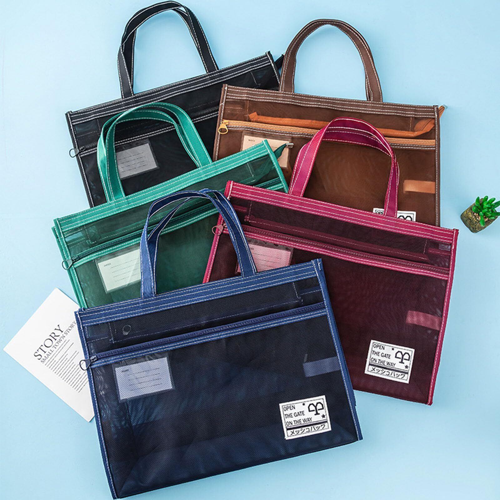 [WKYHLGKL] キャリングバッグ A3 ビジネスバッグ 手提げファイルバッグ 2層 大容量 多機能 A3 バッグ 仕切り収納 手持ち 肩掛け 2WAY使用可能 メッシュバッグ 携帯に便利 ファスナー式 キャリングケース トートバッグ 男女兼用
