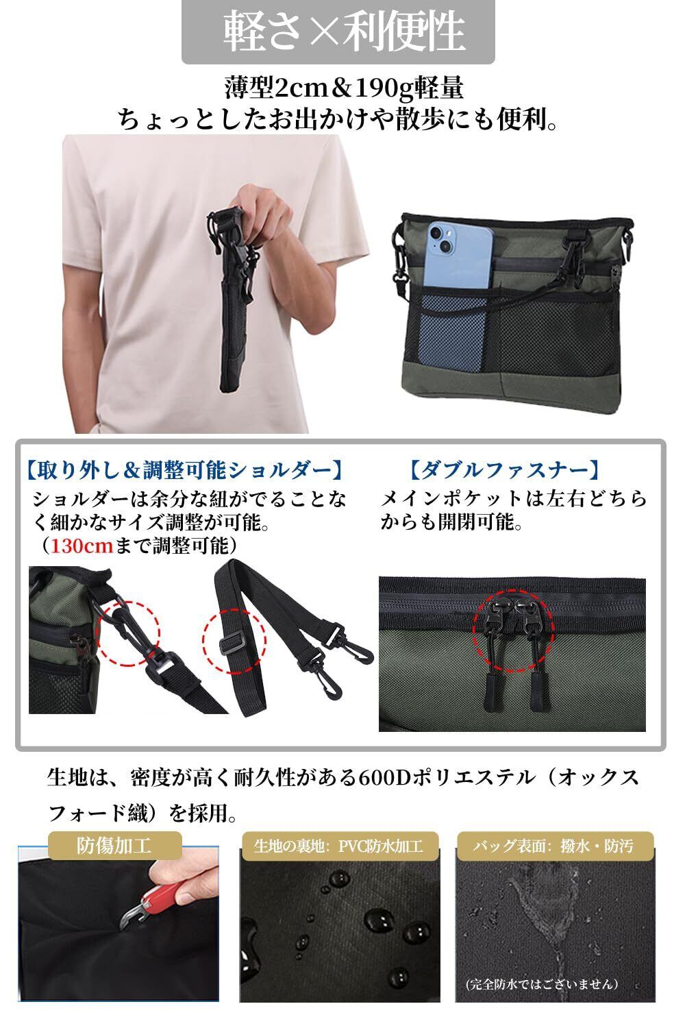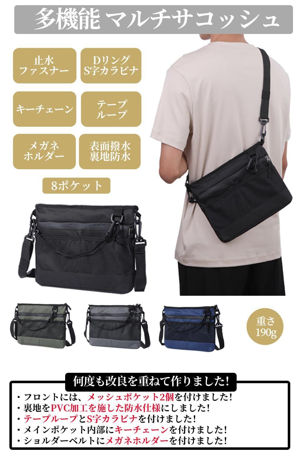 ●軽くて丈夫、シンプルデザイン&多数の便利機能を兼ね備えたマルチサコッシュ。■【 最低限のものを軽快に! 】最低限の持ち物を軽快に持ち歩くことにこだわって設計したサコッシュ。重さはわずか190gで長時間使用でも肩こりや首の疲れを軽減。(ショルダーベルト込みで215g)長財布はもちろん、iPad miniやkindle paperwhiteなどのミニタブレットを収納可能。■【こだわりのサイズ感&8ポケット】2cm薄マチ、コンパクトで、スマホや長財布、手帳や小物を入れるのにぴったりのサイズです。収納ポケットは全部で8個。前面にはメッシュポケット(小)×2、止水ファスナーポケット(大)×1、内側には、オープンポケット×2とジッパーポケット×1があり、背面にもマグネットポケット×1が付いています。