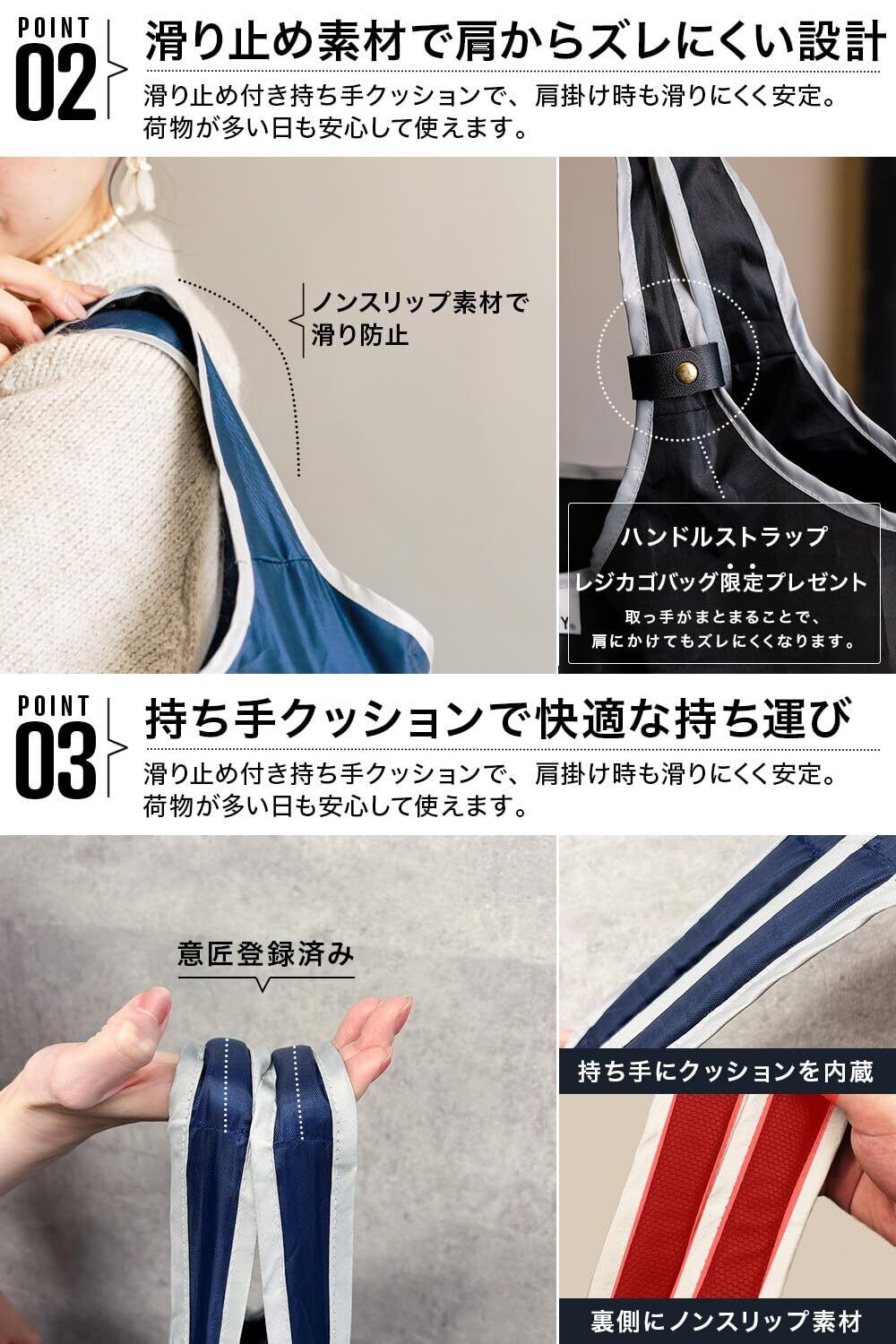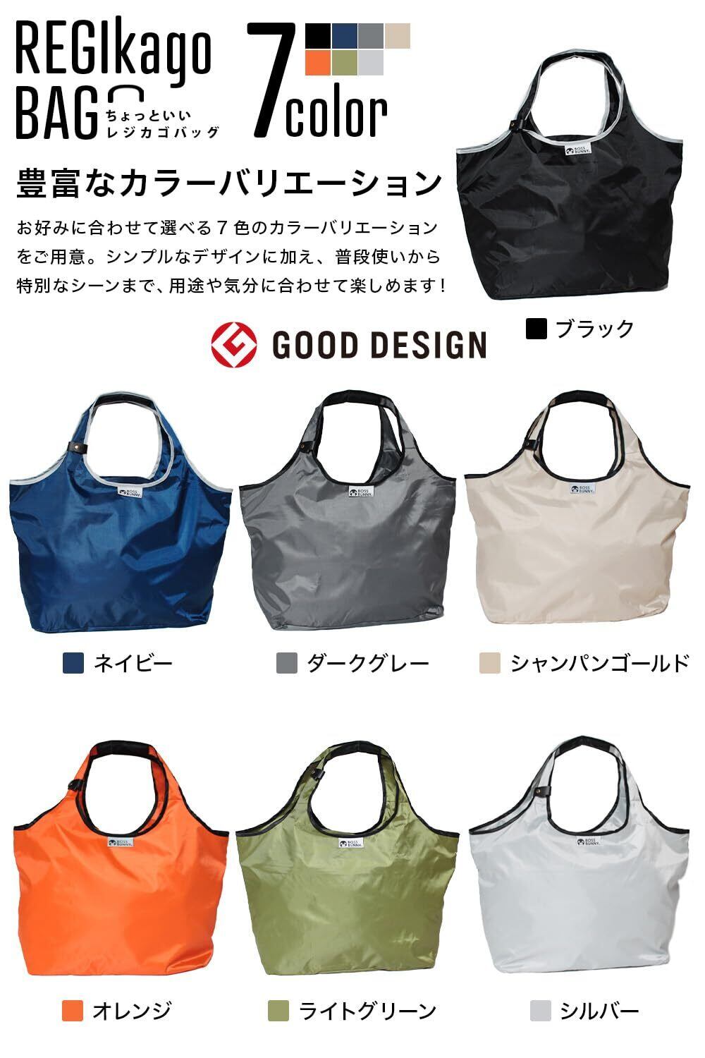 [BOSSBUNNY] グッドデザイン賞受賞 折りたたみ レジカゴバッグ 手や肩が痛くならない 保冷 大容量 エコバッグ マチ付き ファスナー付き 国内企画 軽量 丈夫 保温 撥水 無地 買い物バッグ 男女兼用 肩から滑り落ちにくい REGIkago BAG