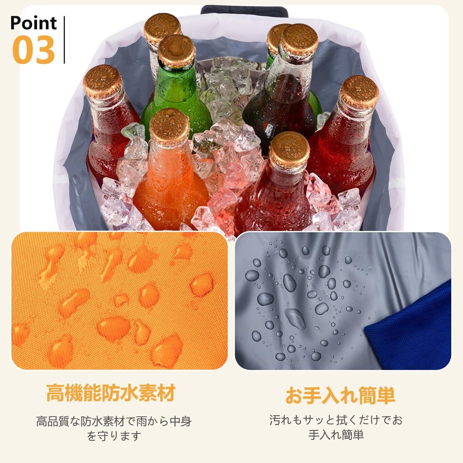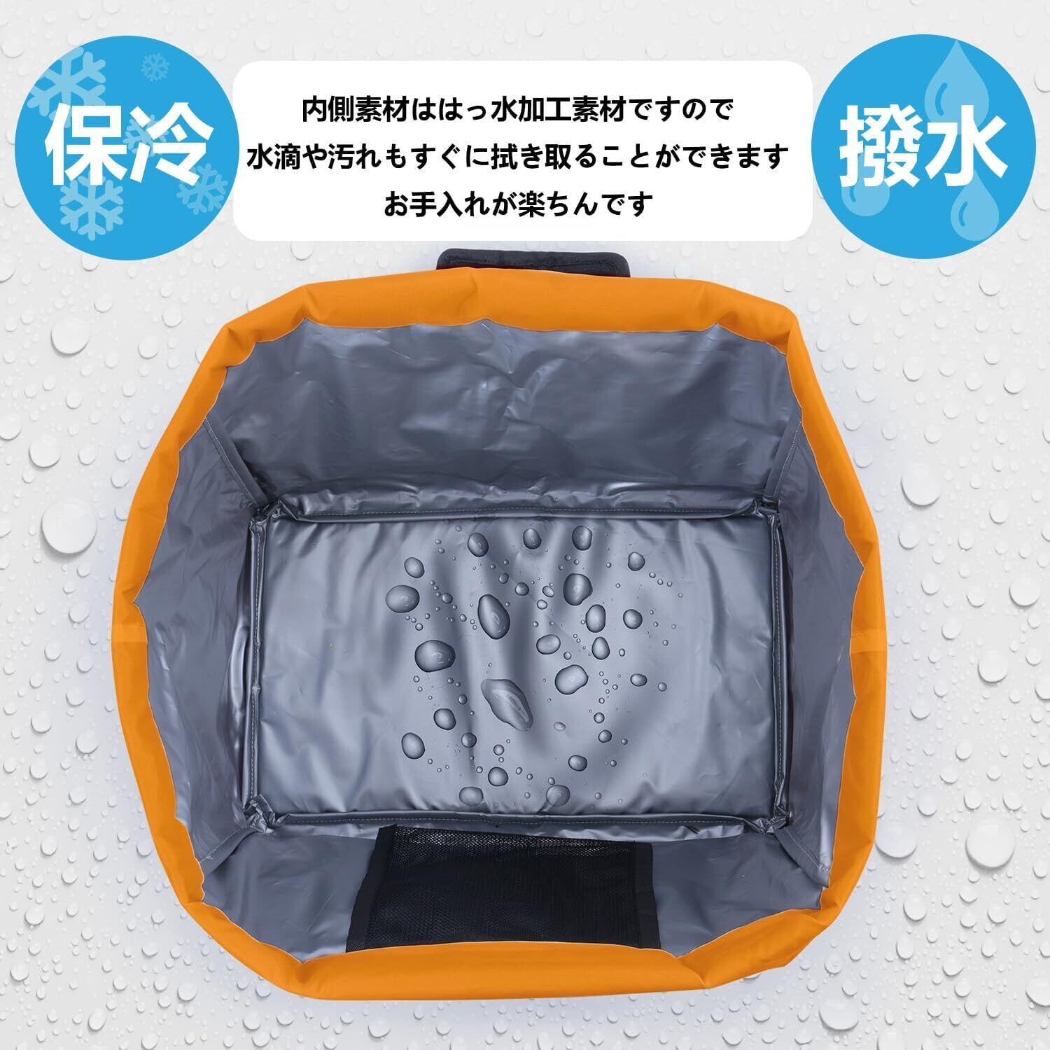 【高品質素材で保温・保冷効果抜群】カチオン性生地とPEVA裏地を採用し、優れた保温・保冷性能を発揮。食材の鮮度を保ち、冷たい飲み物も長時間キープできます。さらに、ドライアイスや冷却剤用のメッシュポケット付きで、より効果的な保冷が可能。巾着式の上部デザインで中身の落下を防ぎ、安心してご利用いただけます。