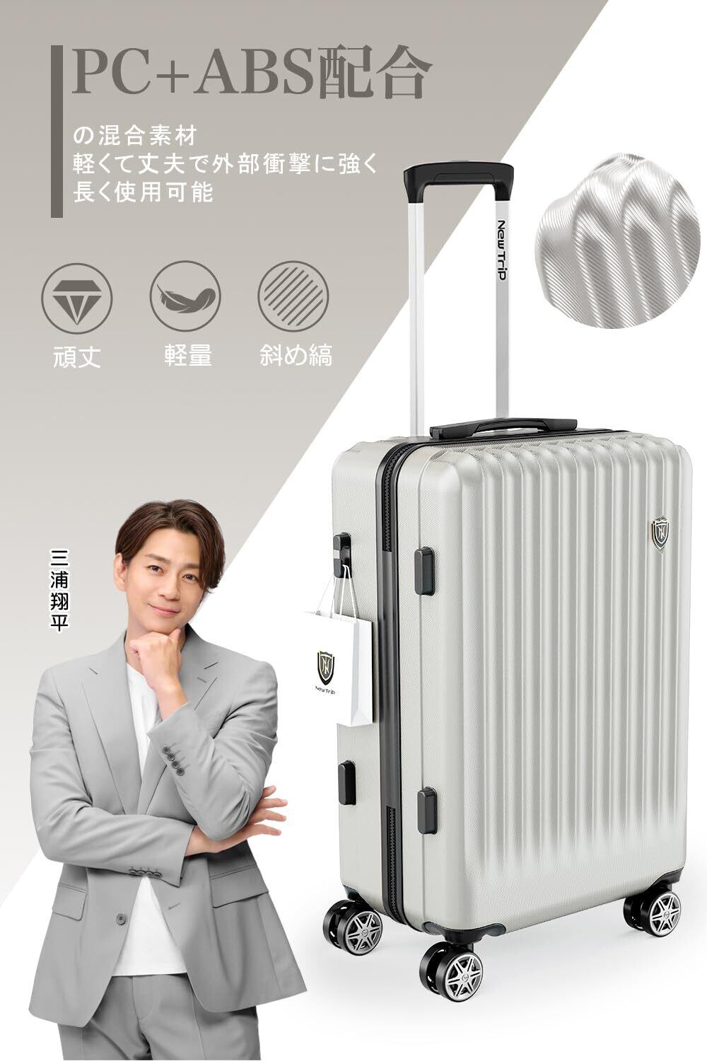 [New Trip] スーツケース キャリーケース ストッパー付き 機内持ち込み 軽量 大型 S/M/Lサイズ キャリーバッグ 耐衝撃 大容量 ファスナータイプ 静音 ダブルキャスター TSAロック 海外 旅行 ビジネス 出張 (オートミールグレー、Mサイズ /4~7泊 /60L)