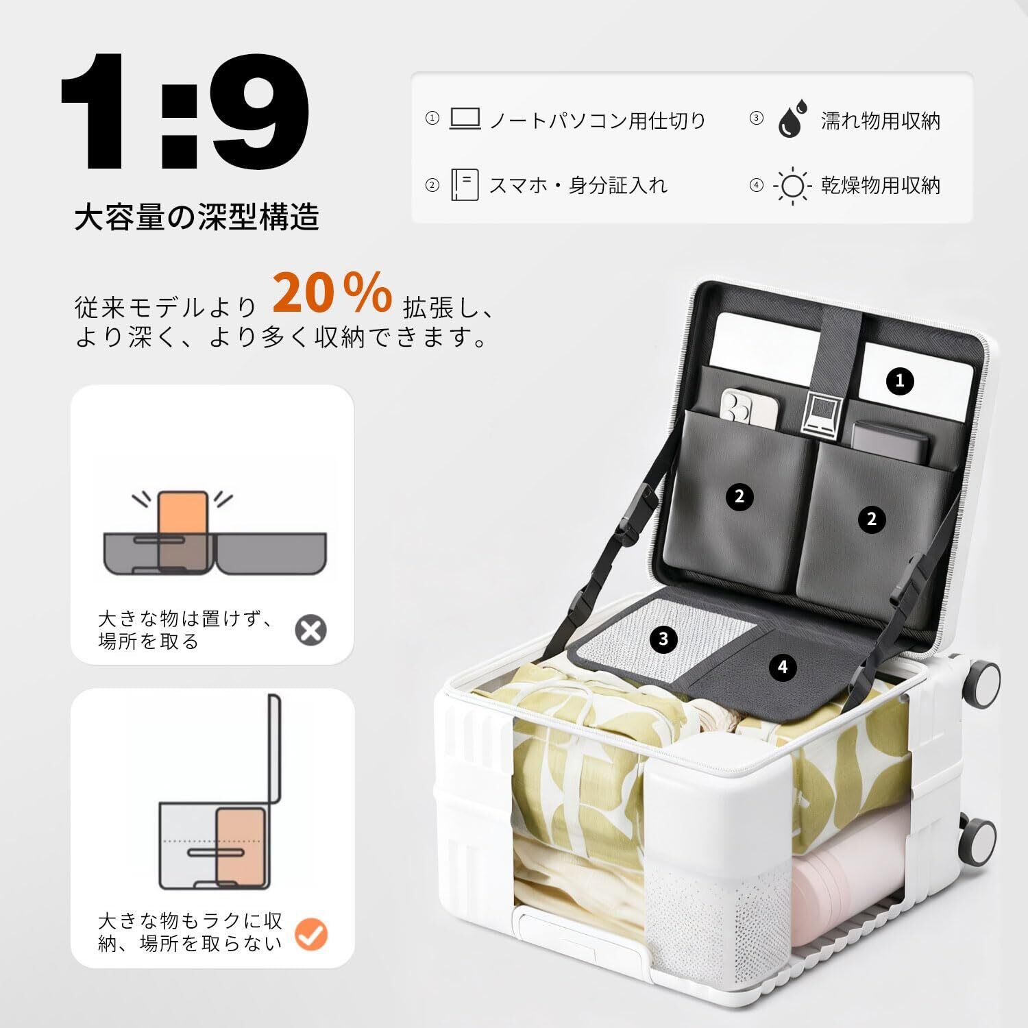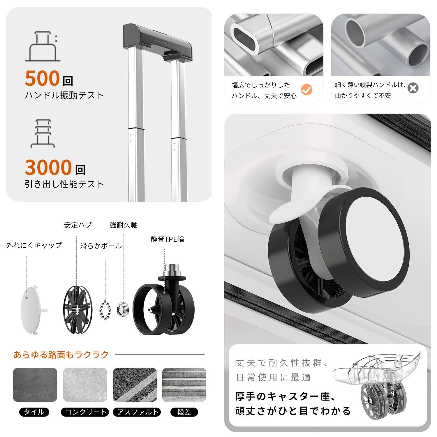 [bimiti] スーツケース 機内持ち込み 拡張機能付き 多機能フロントオープン USBポート付き カップホルダー付き 超軽量 小型 可愛い 耐衝撃 大容量 軽量 TSAロック ダブルキャスター 旅行 ビジネス 出張 (ホワイト、S(18インチ/1~3泊/41L)
