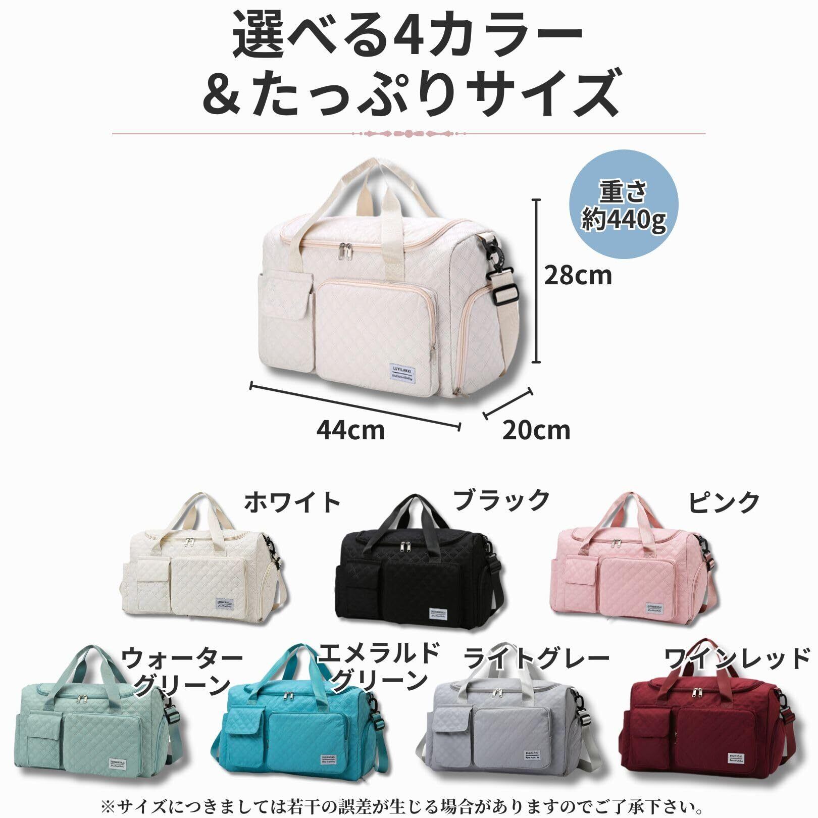 【商品仕様】〇カラー:ホワイト、ブラック、ピンク、ウォーターグリーン、エメラルドグリーン、ライトグレー、ワインレッド。〇サイズ:幅 44cm × 高さ 28cm × 奥行 20cm。〇仕様:前面ポケット×2、サイドポケット、バックポケット、防水ポケット(小物用)、シューズ収納ポケット。〇ショルダーベルト:調節可・取り外し可。〇重量:約440g。〇素材:オックスフォード+ポリエステル。※サイズにつきましてはあくまで目安のため若干の誤差が生じる場合がありますのでご了承下さい。※商品写真はできる限り実物と近づけるようにしていますが、お使いのモニター設定、お部屋の照明等により実際の商品と色味が異なる場合があります。※海外製品のため日本製のものと比べて細かいところで雑に見えるものや多少の誤差がある場合があります。恐れ入りますが予めご了承ください。